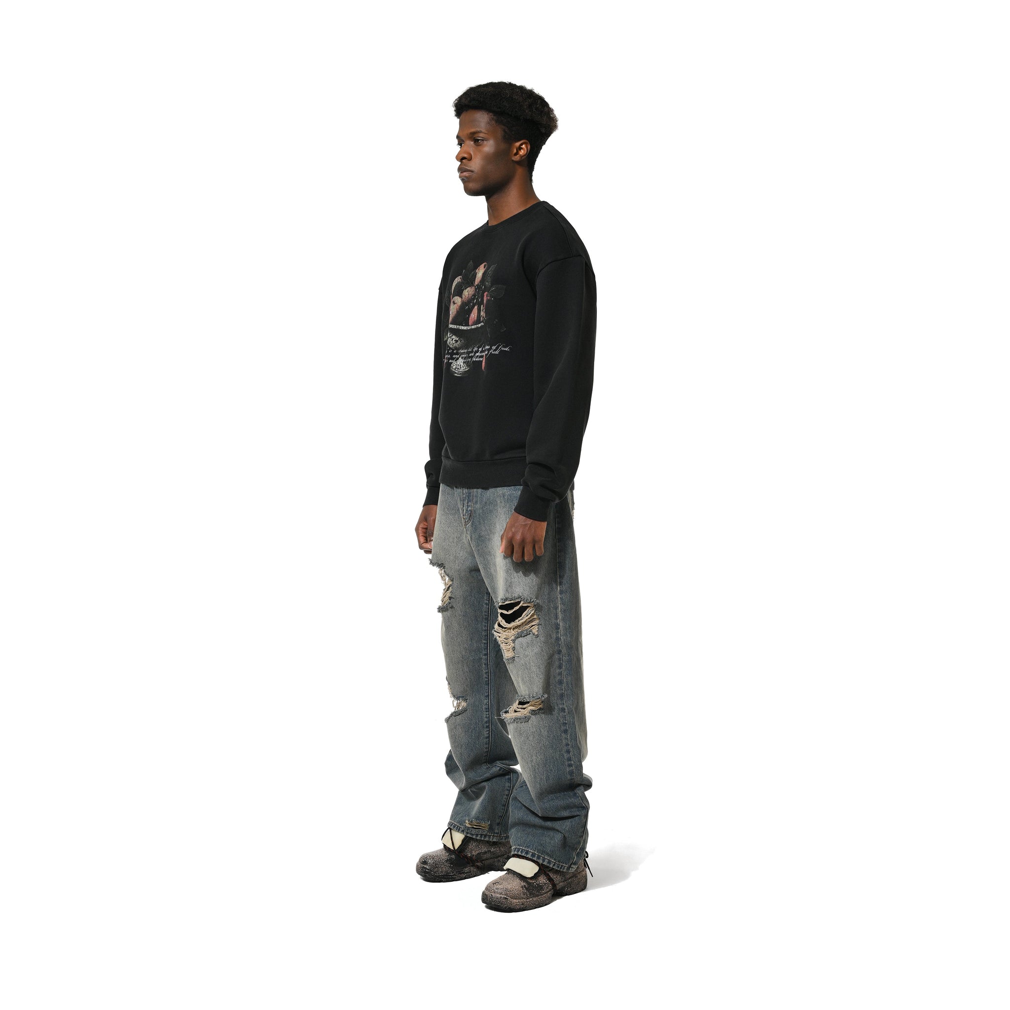Crafted from premium washed blue denim, these distressed pants strike the perfect balance between rugged edge and casual refinement. Featuring artfully placed abrasions and a relaxed fit, they deliver a contemporary take on a timeless essential.