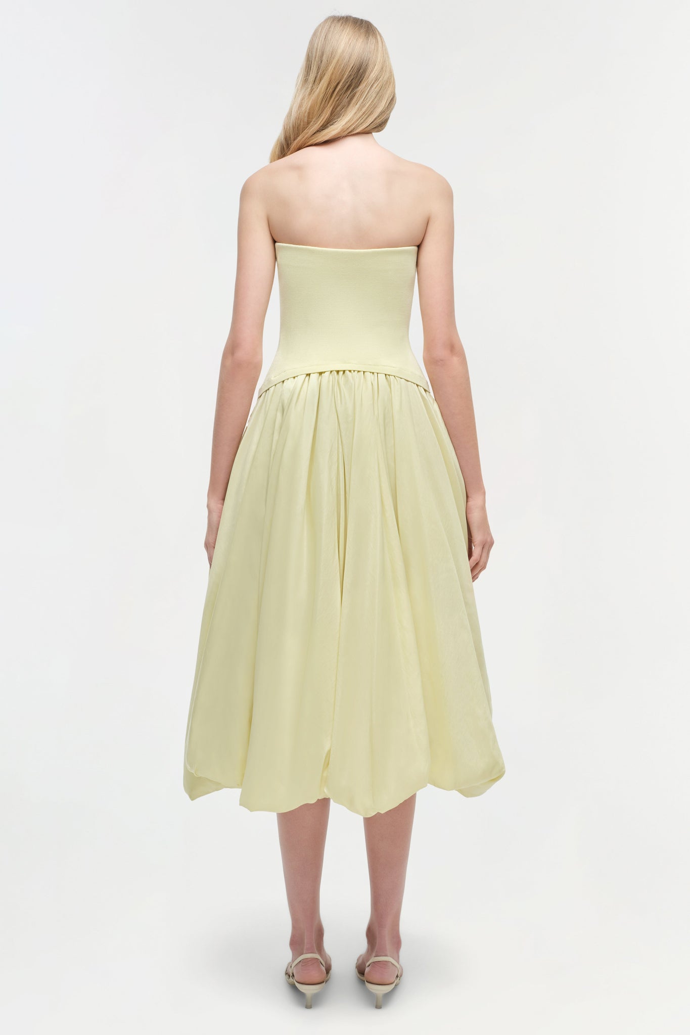 IZZY STRAPLESS TAFFETA MIDI DRESS