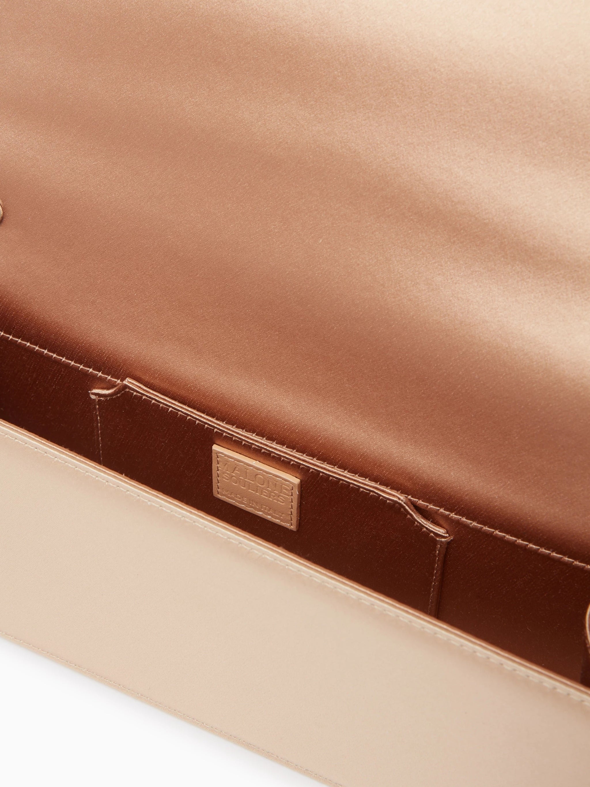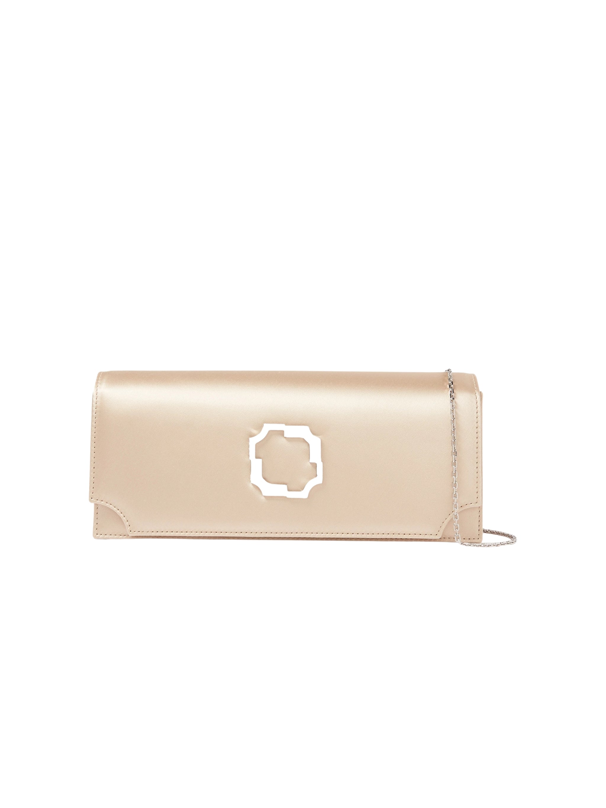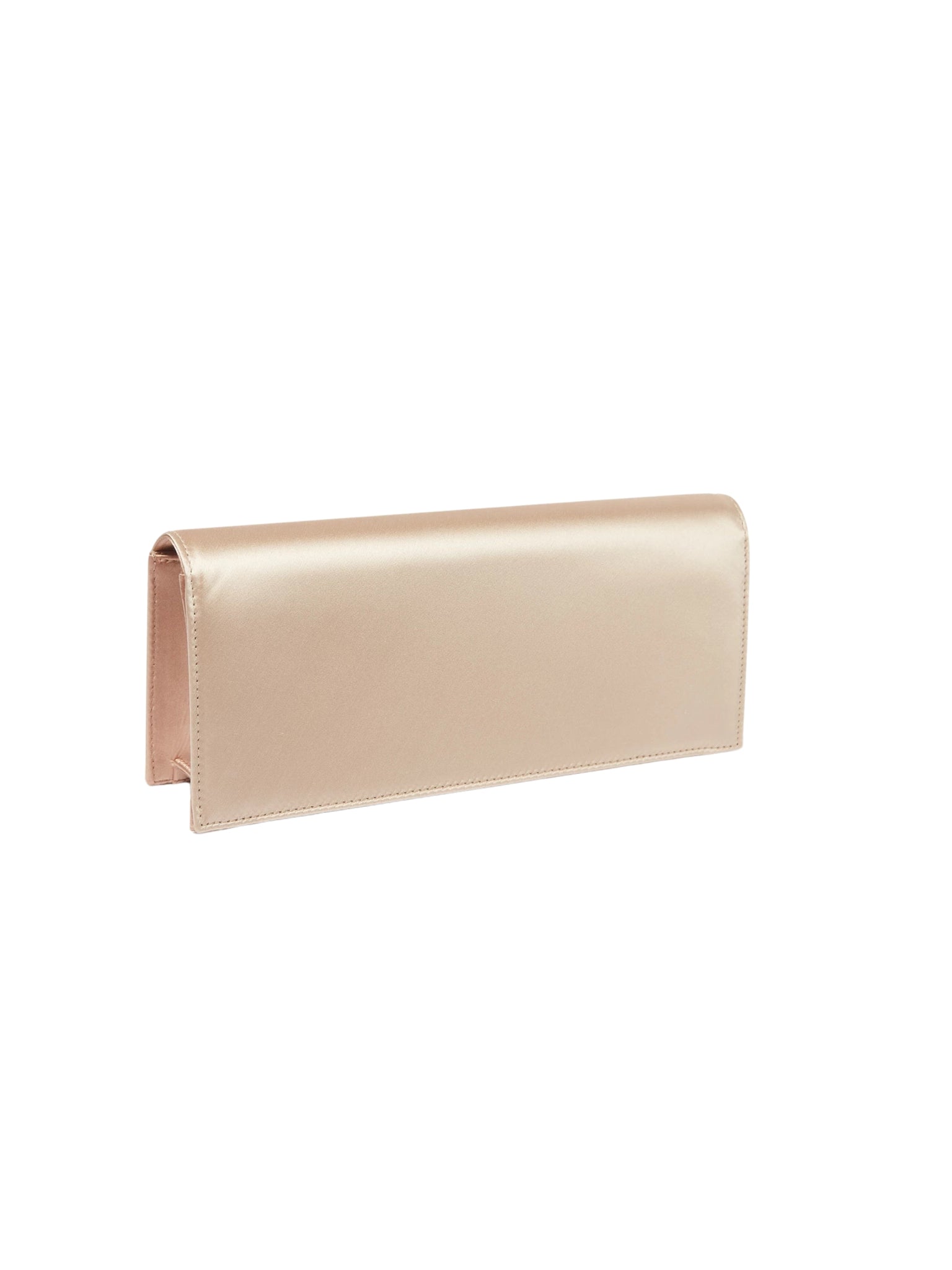 Elegant and timeless, the Vivien Clutch by Malone Souliers in Platino and Nougat is a refined accessory crafted entirely from luxurious satin. Its soft shimmer and neutral tones make it the perfect companion for formal evenings, weddings, or upscale events.