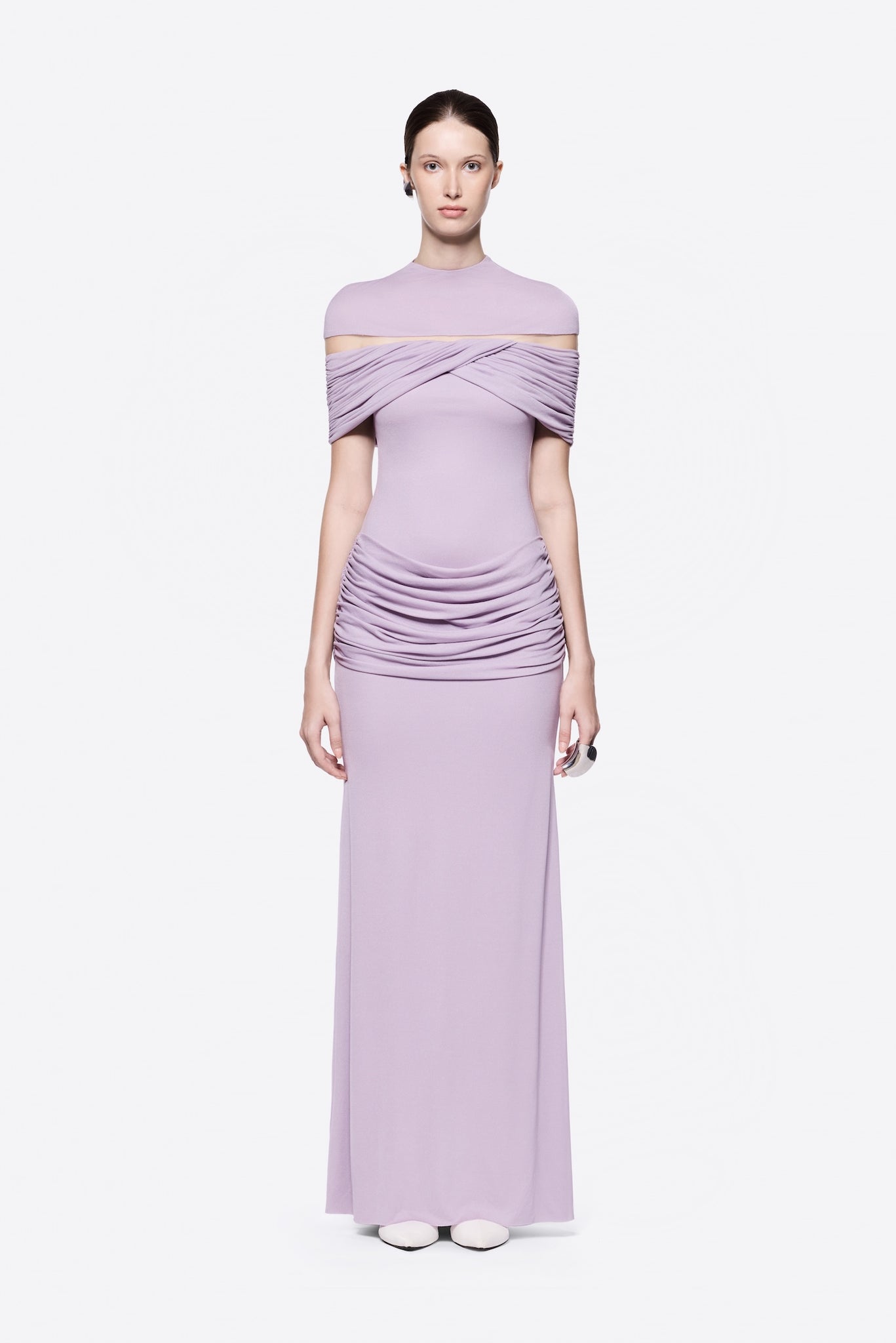 Symmetrical draping at the bust and hip for sculpted definition