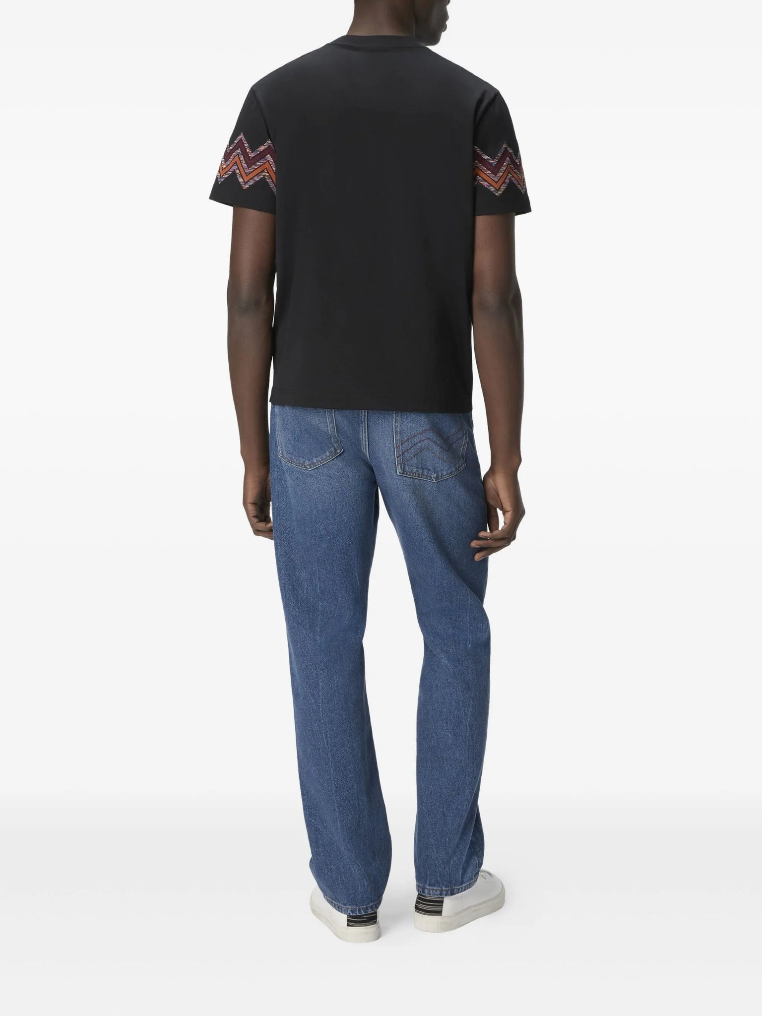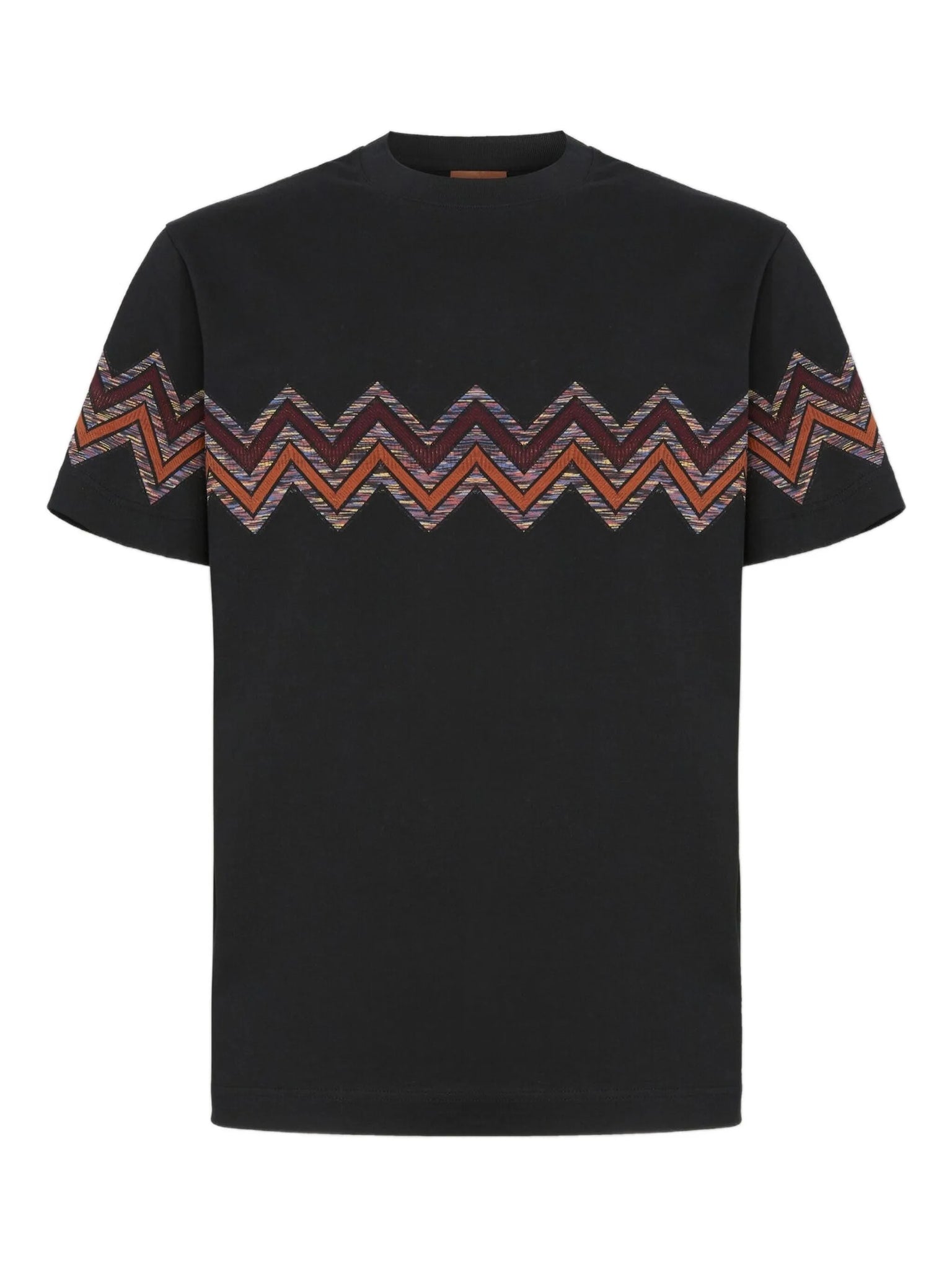 Make a statement with the Missoni T-shirt with Maxi Chevron Insert, where timeless design meets modern craftsmanship. Crafted from soft cotton jersey, the bold slub intarsia chevron adds depth and movement, transforming a classic T-shirt into a distinctive piece that embodies Missoni’s iconic style.