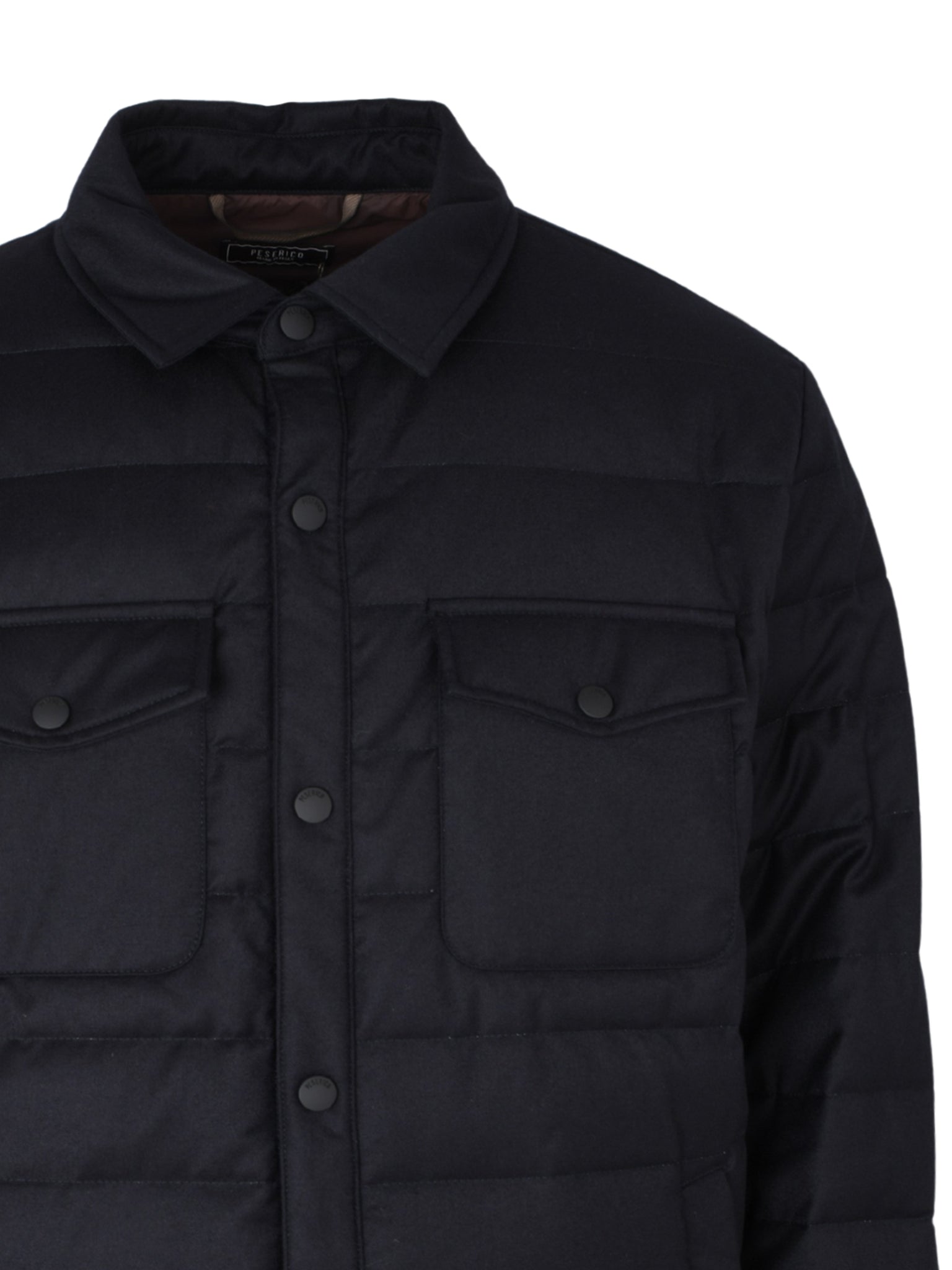 Where classic tailoring meets cold-weather function this down-quilted overshirt by Peserico is crafted in luxurious virgin wool and filled with premium goose down for lightweight warmth. Designed with a shirt collar, patch pockets, and a regular fit, it’s a refined layering piece ideal for crisp Saudi evenings and polished winter looks.