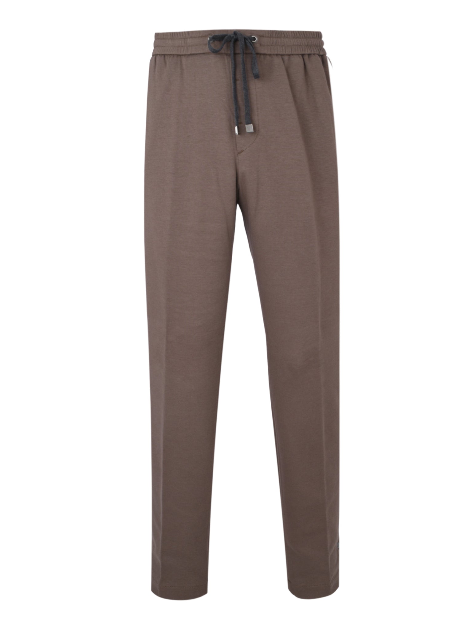 Comfort meets contemporary style in these fleece jogger pants by Peserico. Tailored in a relaxed fit, they feature an elasticated waistband with drawstring, discreet pockets, and a touch of metal detailing for a refined finish. Ideal for off-duty dressing, weekend travel, or elevated loungewear.