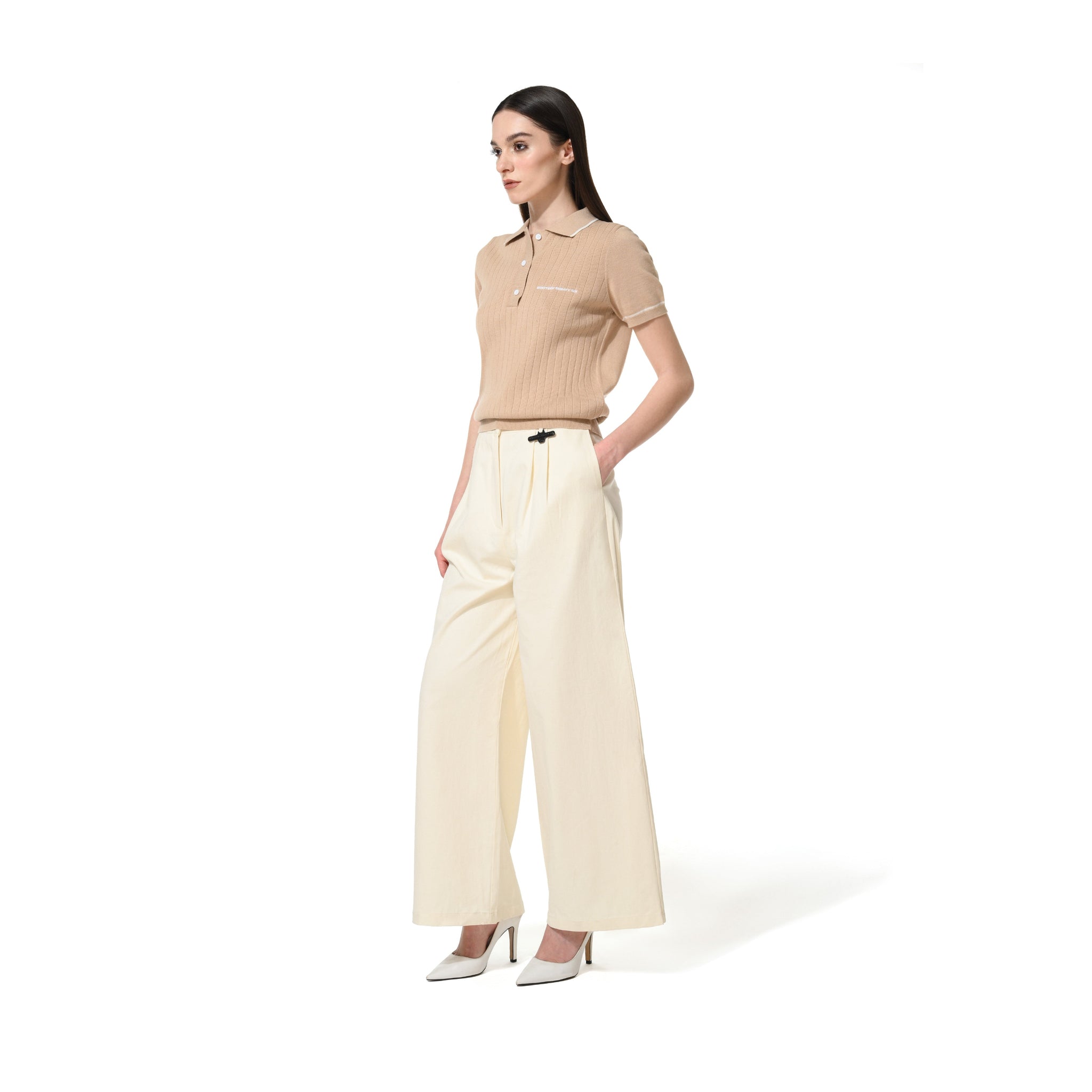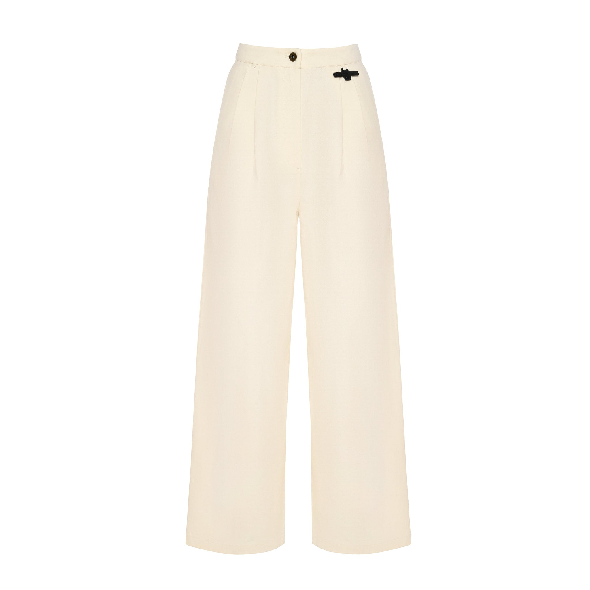 PLEAT DETAIL WIDE LEG PANTS - OFF WHITE