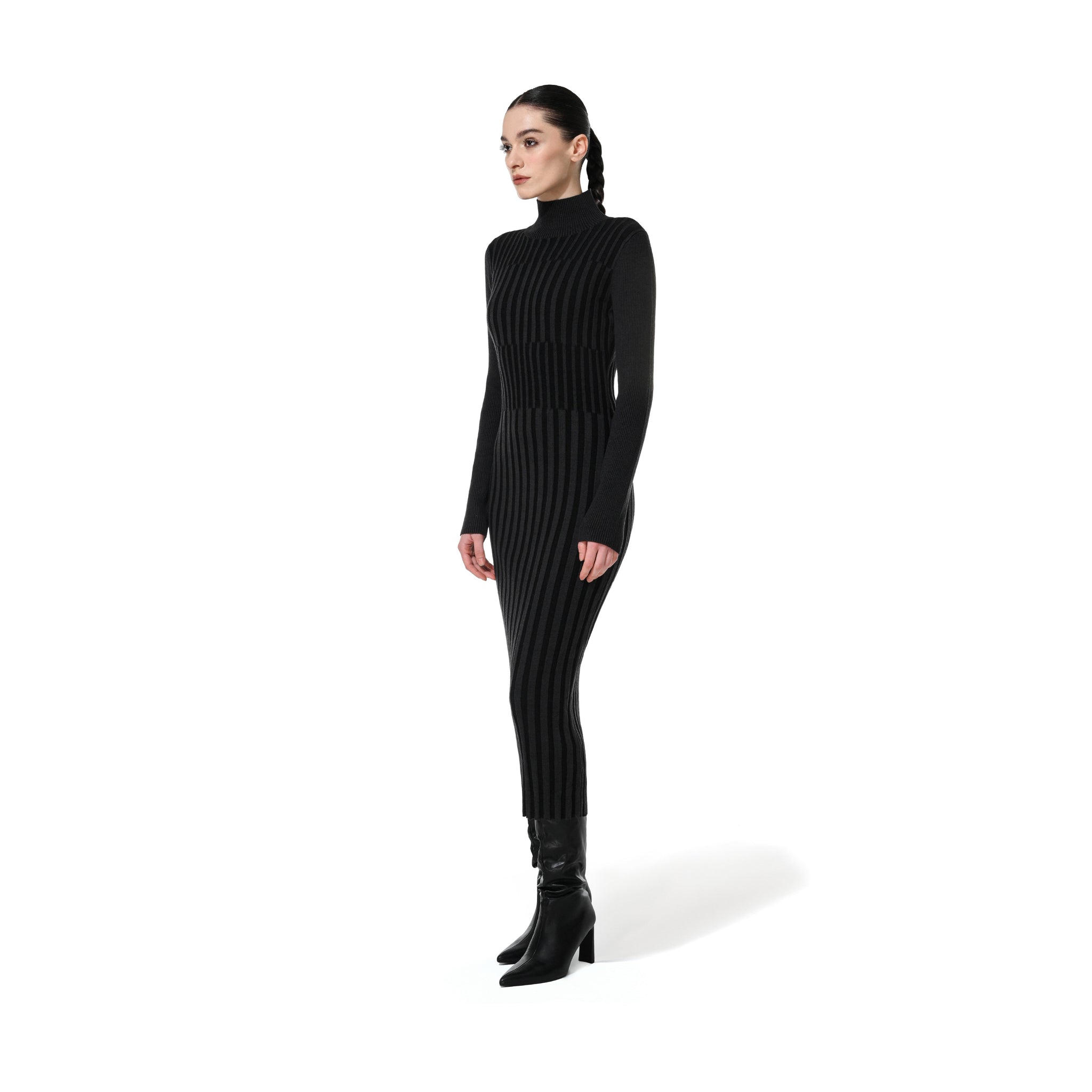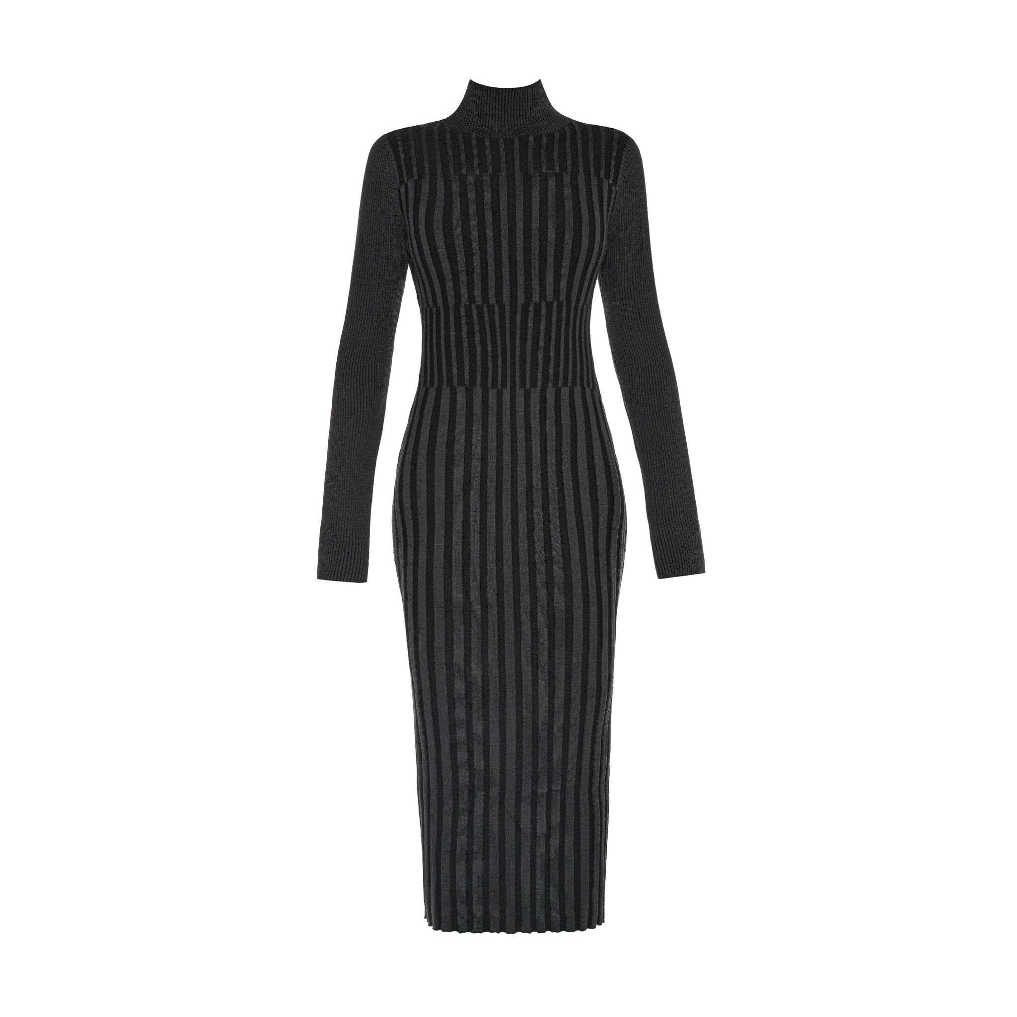 Elegant, timeless, and effortlessly refined the High Neck Knitted Dress in black and charcoal brings together sophistication and comfort, making it a winter essential for the modern Saudi woman.
