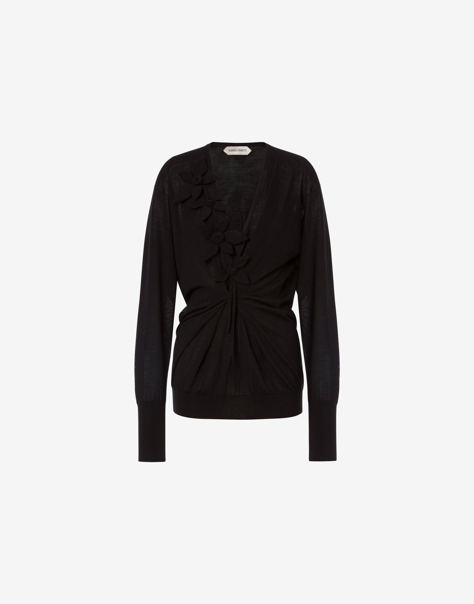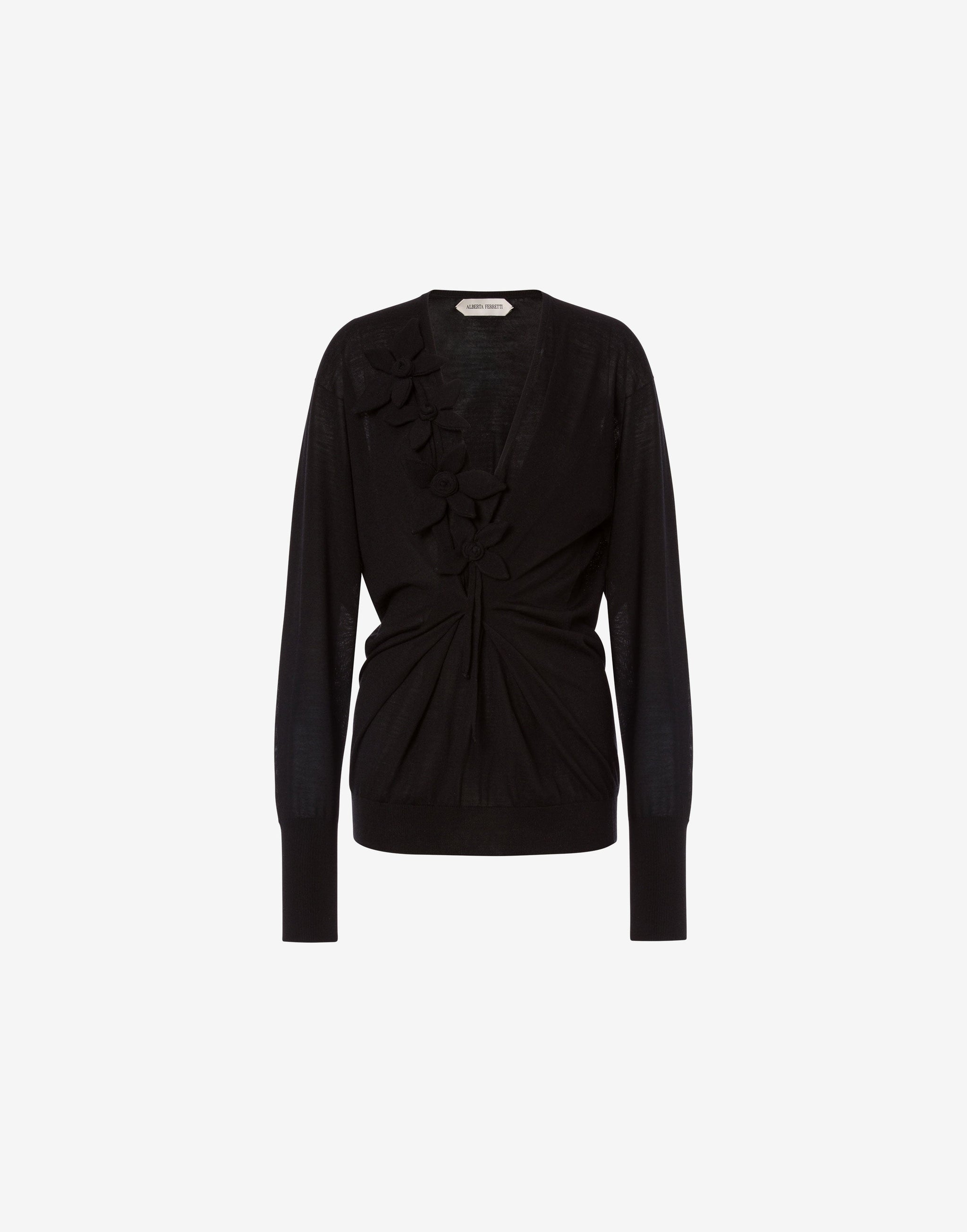Elevate your everyday elegance with Alberta Ferretti’s draped merino-cashmere sweater a refined piece that blends softness, femininity, and timeless Italian craftsmanship. Perfect for Saudi Arabia’s cooler evenings, it brings effortless sophistication to your wardrobe.