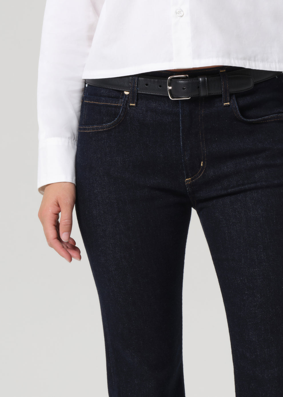 Low-rise bootcut silhouette for a flattering, elongated shape
