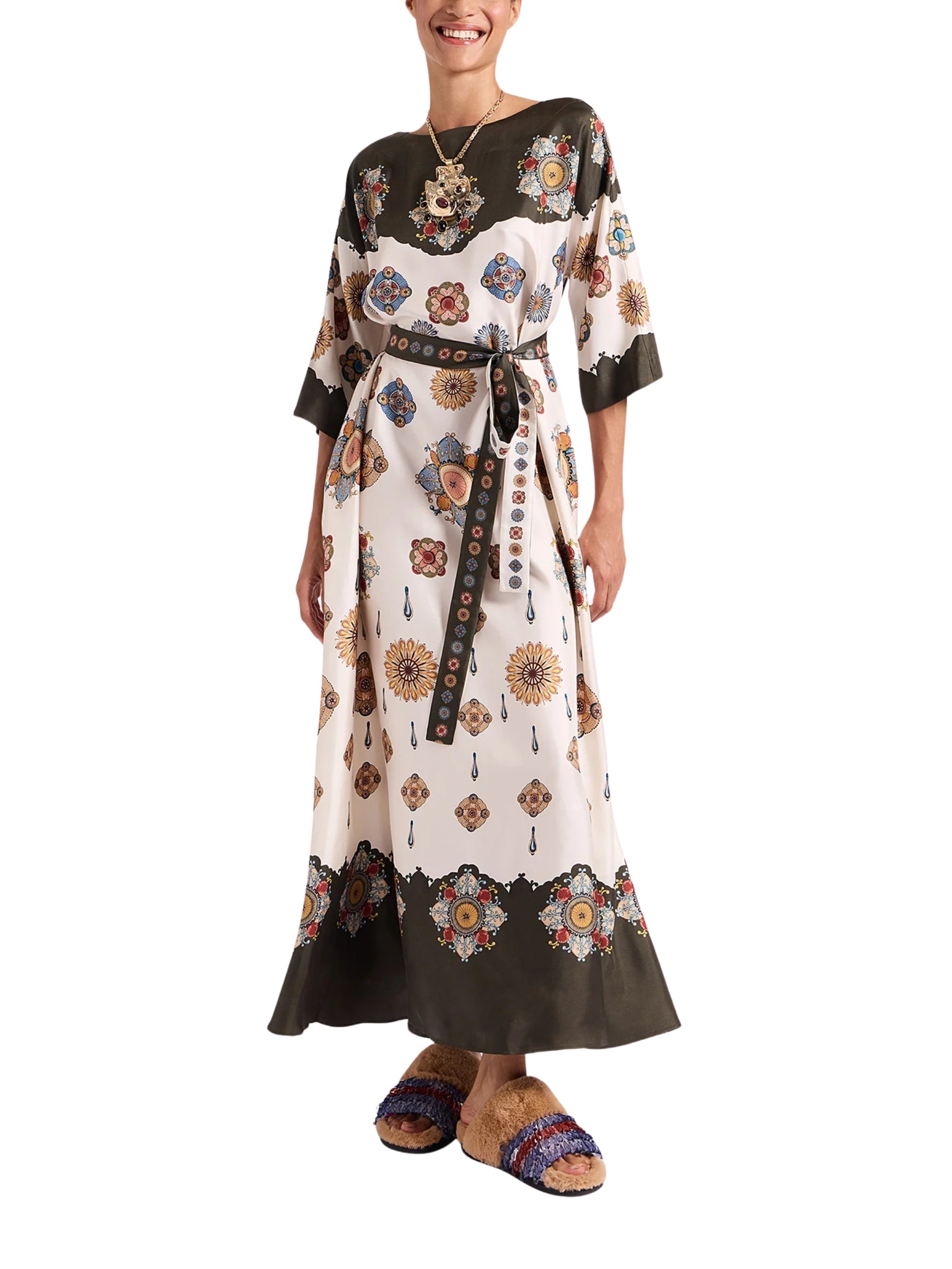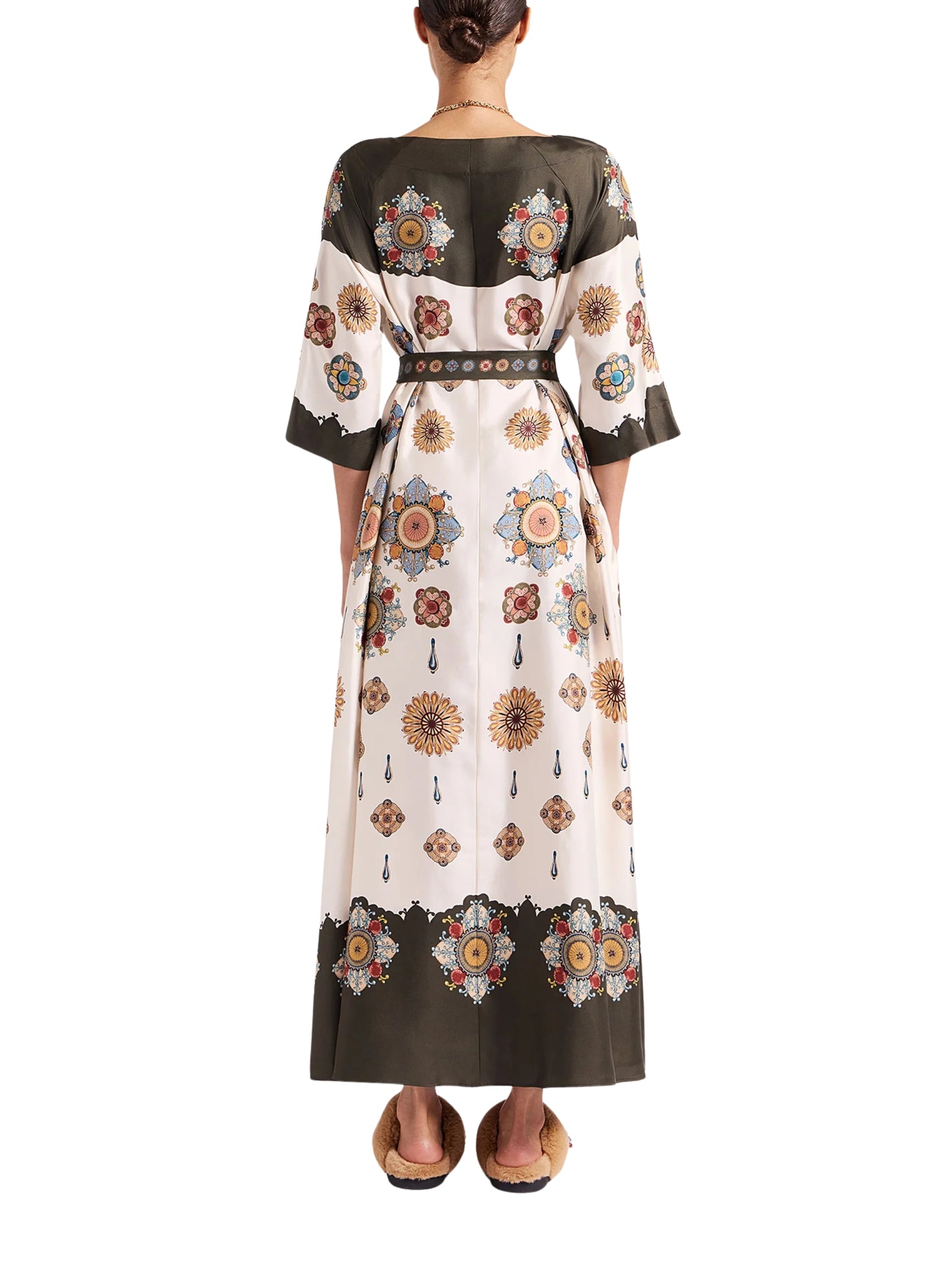 Designed for discerning caftan lovers, the Muumuu Dress embodies 1970s glamour with a modern, Italian twist. Crafted from sumptuous Como-made silk, its flowing silhouette and floor-length cut make it the perfect choice for elegant dinners, soirées, or refined gatherings across Saudi Arabia. Hand-placed prints elevate this dress into a wearable work of art, ensuring you make a statement wherever you go.