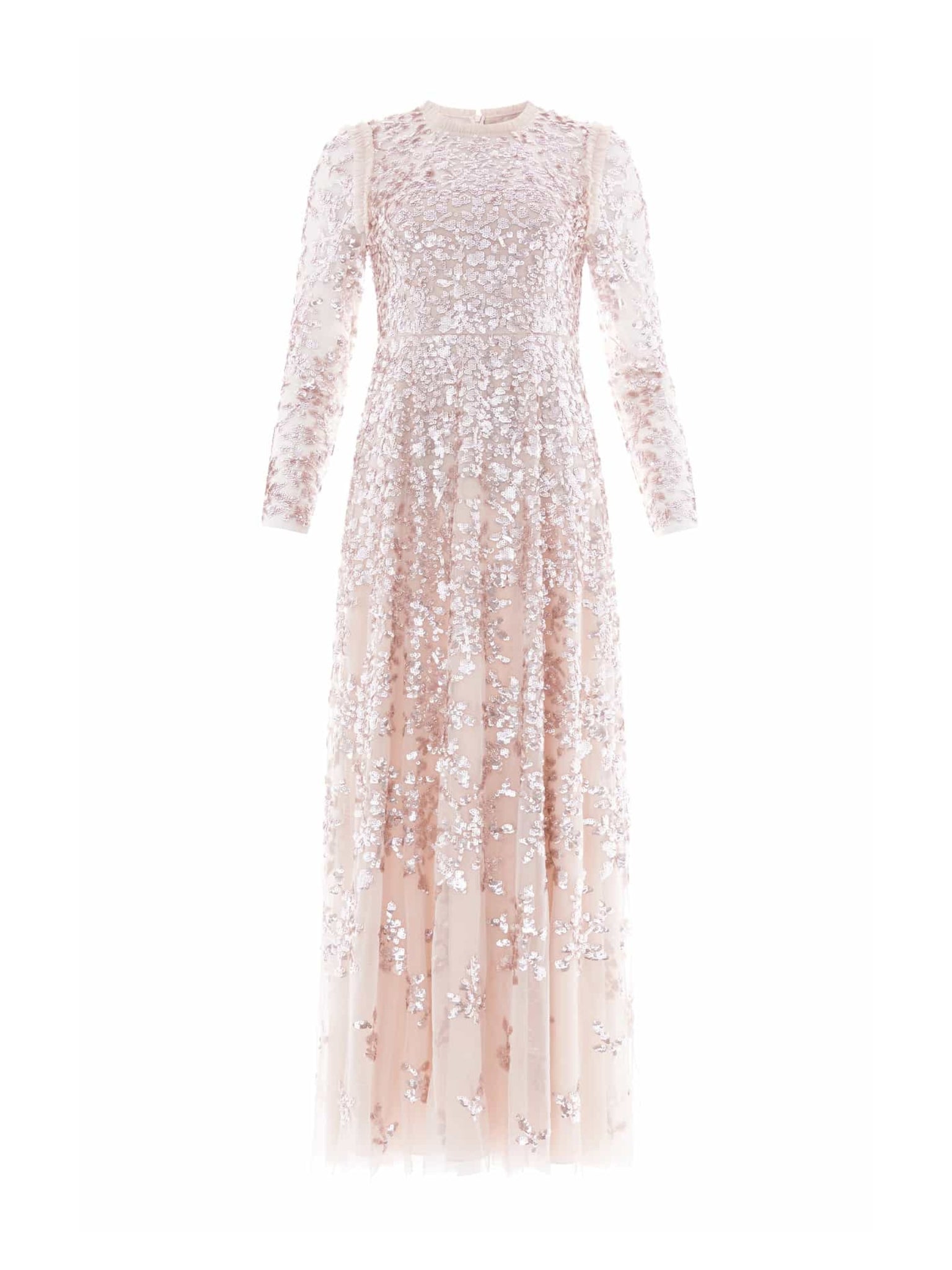 • Plain tulle decorated with tonal sequins and delicate lattice embroidery