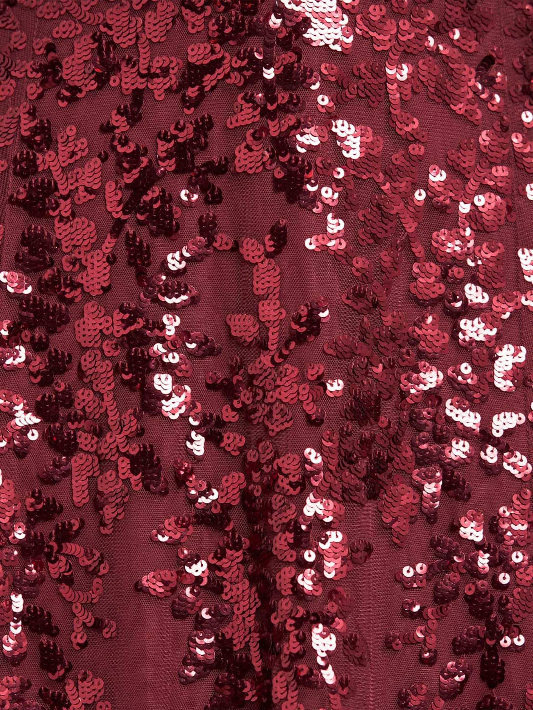 The Rosanna Lattice Round Neck Gown in Winterberry is a romantic statement of modern elegance. Dense sequin florals on the bodice transition into ornate latticework before softening into scattered motifs toward the hem. Layers of lightweight tulle create graceful movement, while the rich winterberry hue evokes the depth of night skies, perfect for evening glamour.