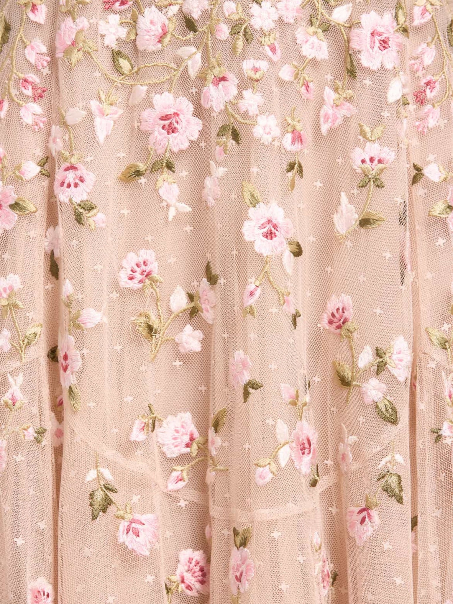Kisses tulle decorated with multi-coloured rose embroidery