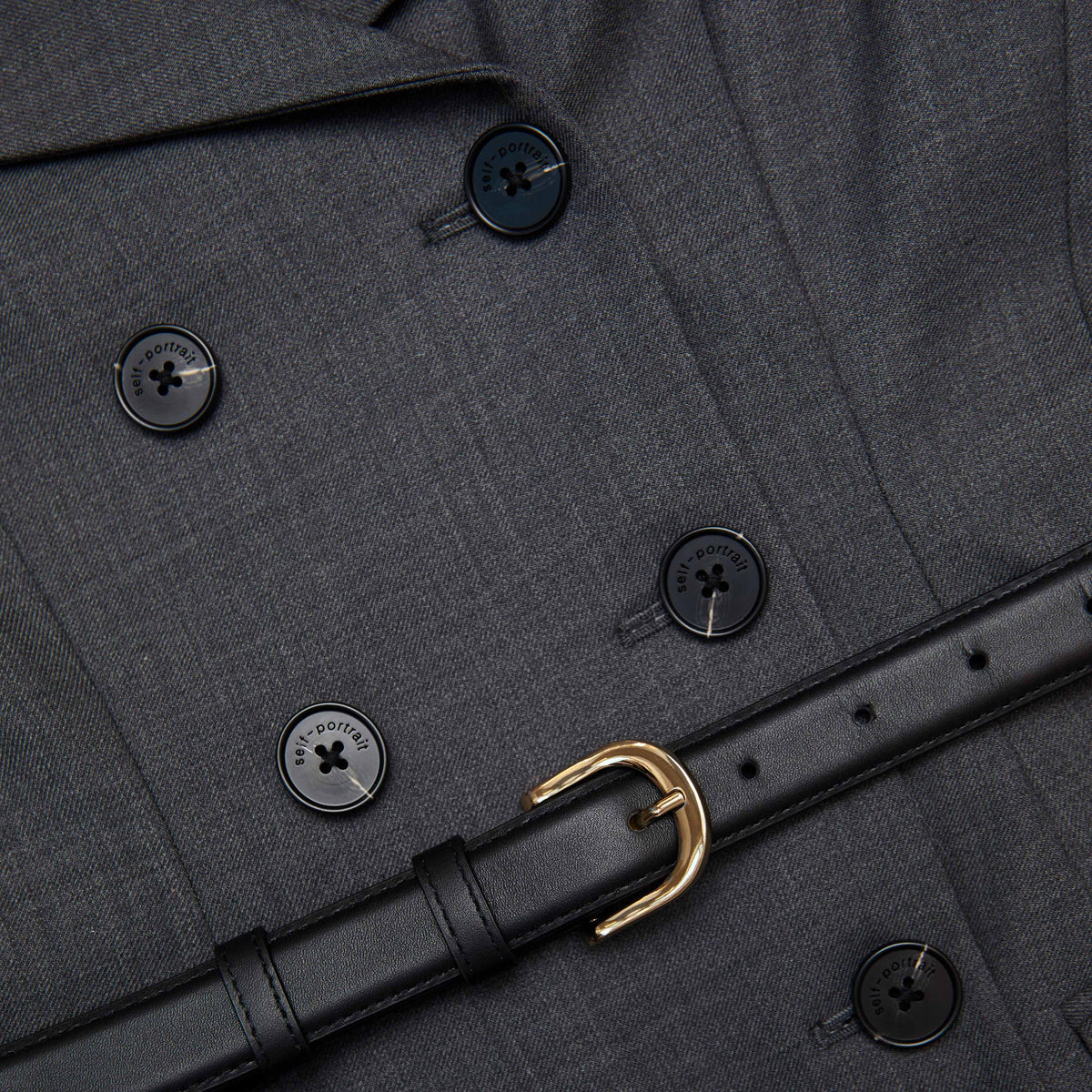 Where classic tailoring meets modern femininity—the Grey Wool Tailored Midi Dress by Self-Portrait features a sensual Bardot neckline and a cinched peplum waist. Sparkling buttons and a removable belt elevate this refined silhouette, perfect for desk-to-dinner moments.