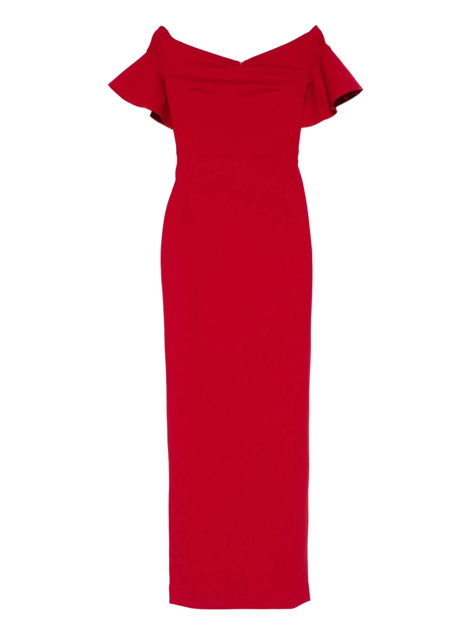Make a bold statement with the Cielo Maxi Dress in Crimson Red by Solace London. Featuring an off-shoulder design and ruffled sleeves, this dress combines vibrant color with elegant detailing for standout occasions.