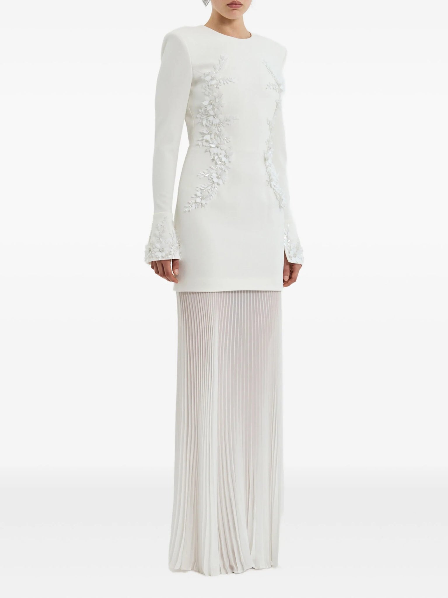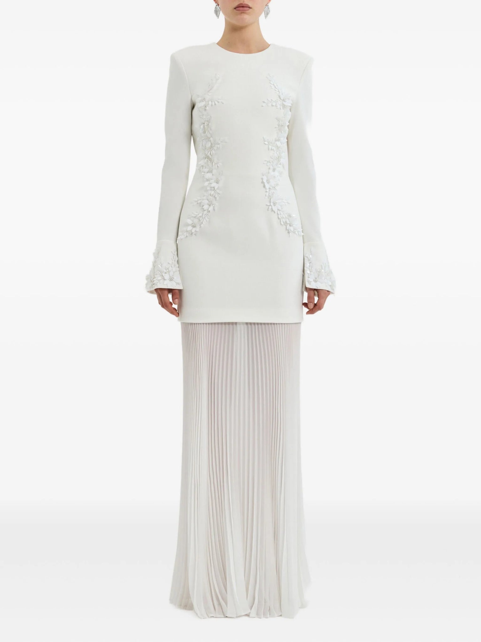 Make a statement of elegance with the Xanthe Long Sleeve Gown by Rebecca Vallance. Crafted in striking ivory with intricate hand-beaded floral applique, this gown blends sophistication and glamour perfect for red carpet events, weddings, or upscale occasions in Saudi Arabia.