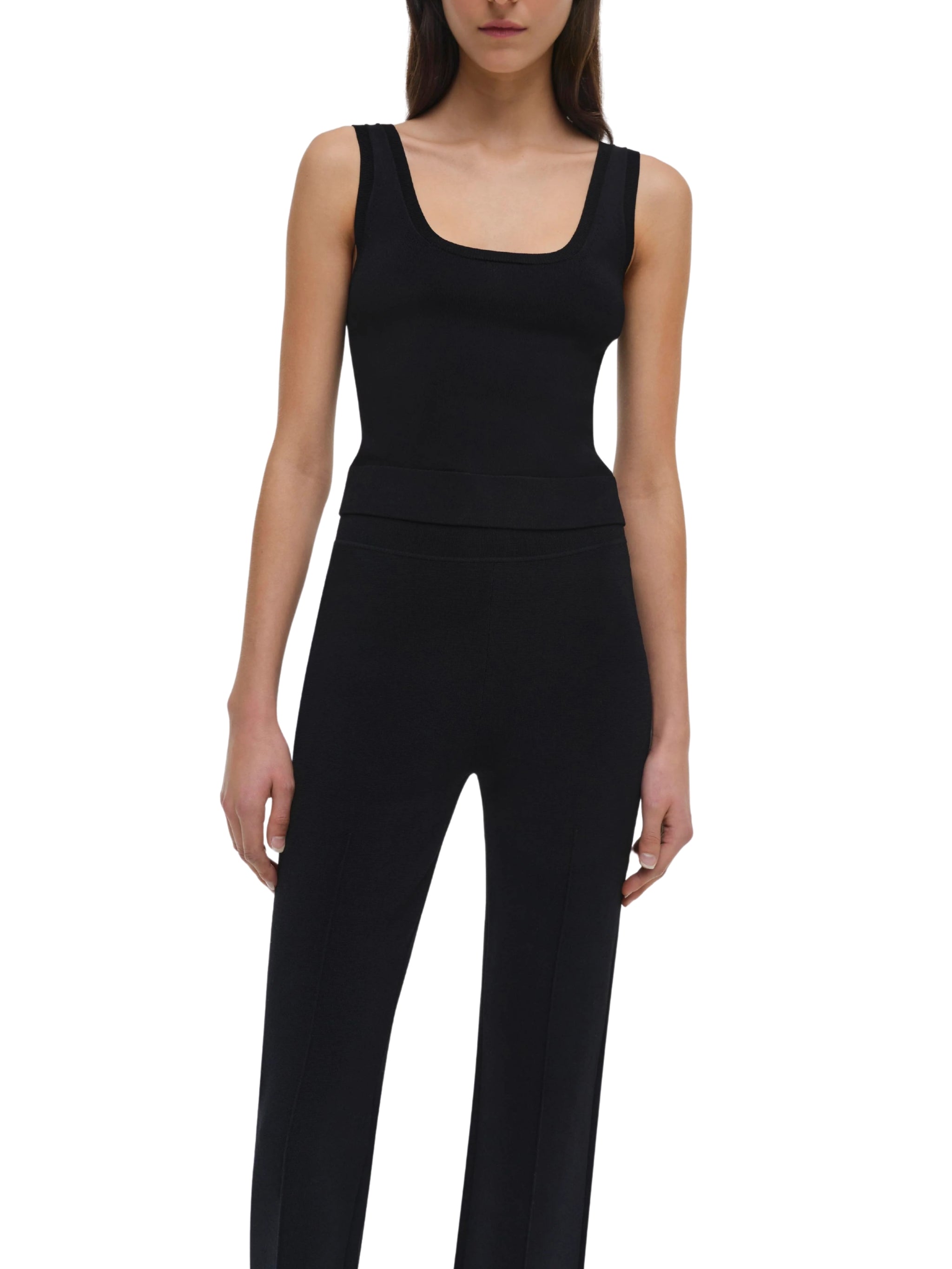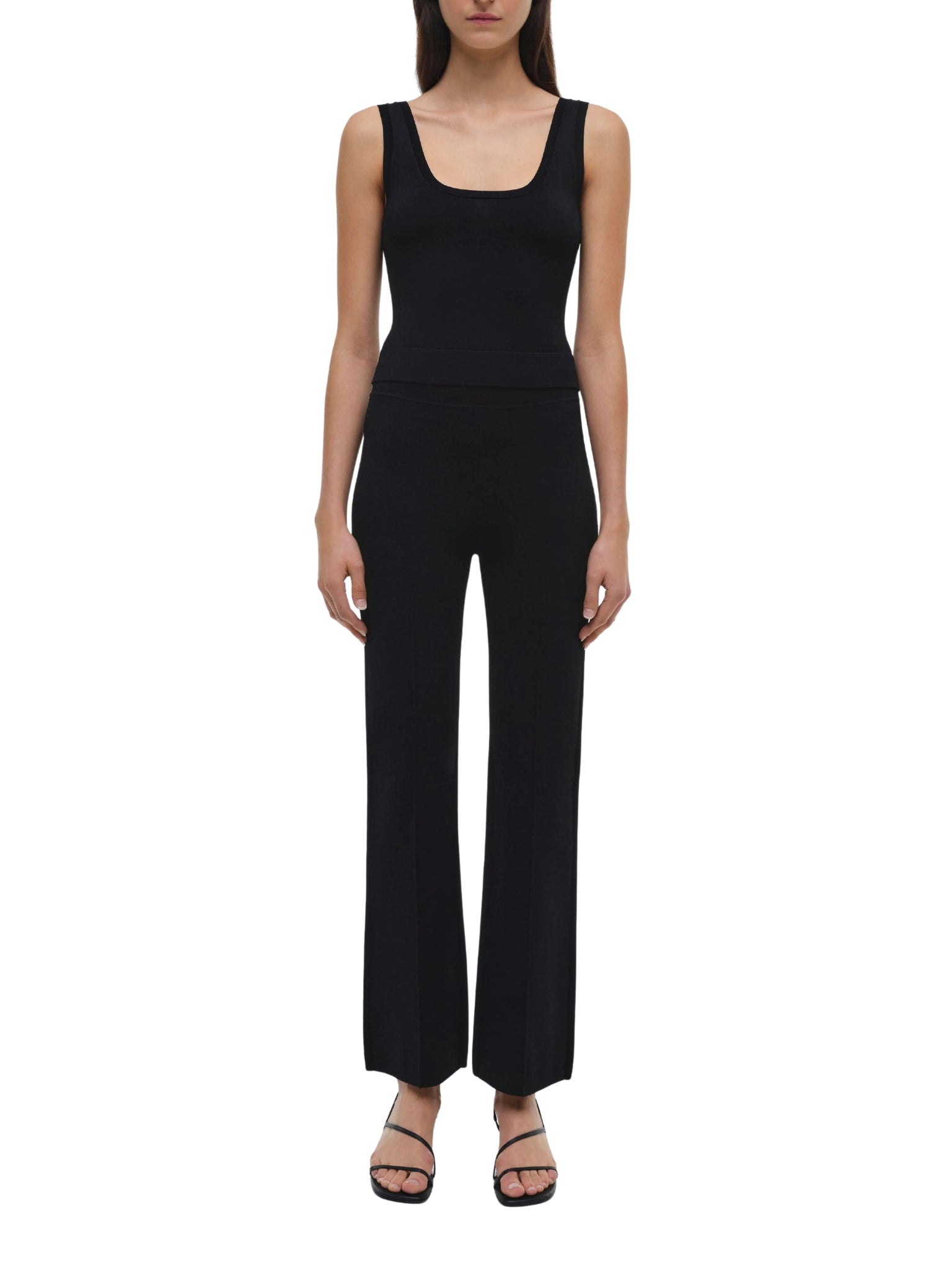 Tailored black pants with a sleek, contemporary silhouette
