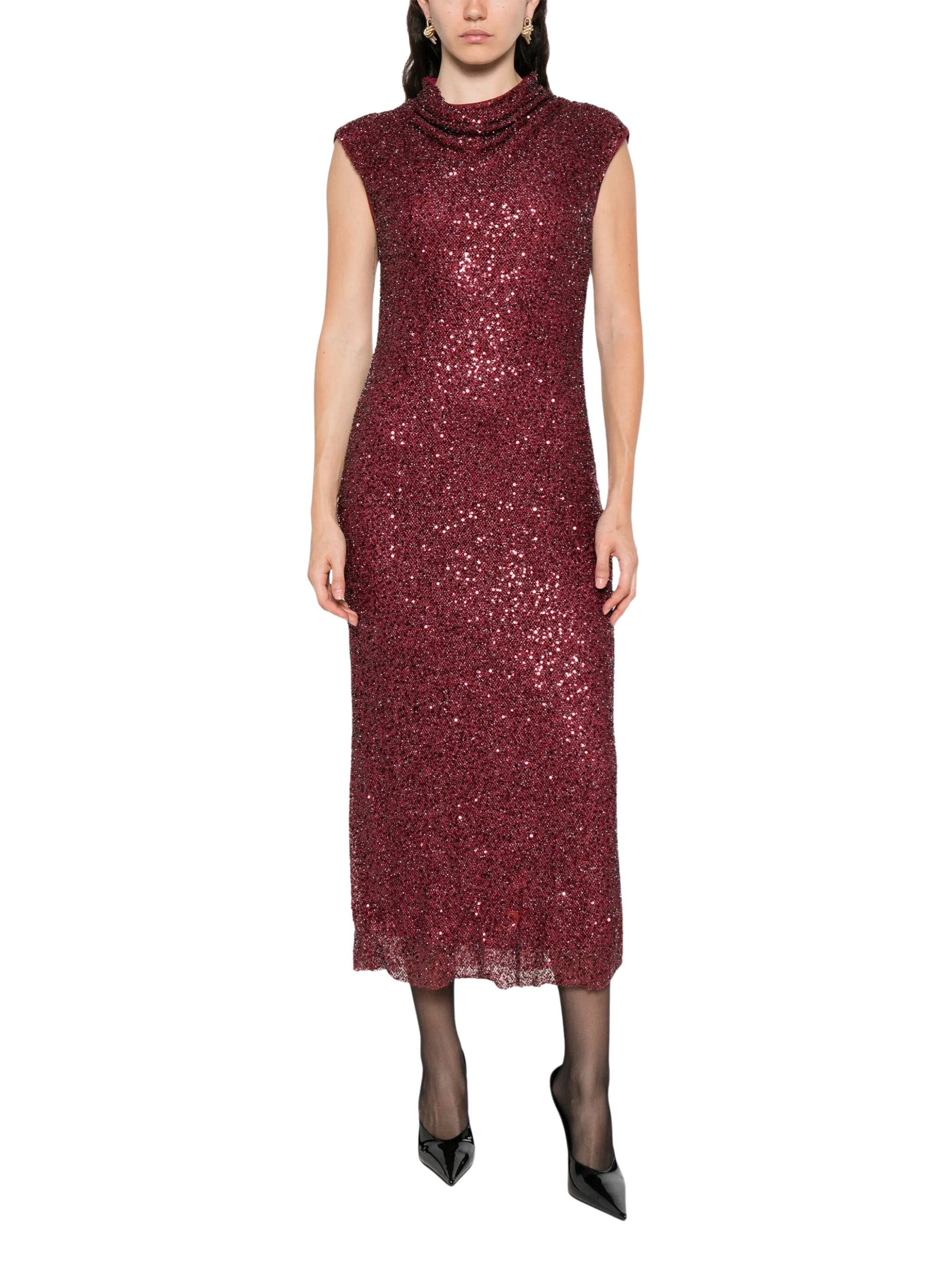 Turn heads with the SIMKHAI Zaria Cowl Neck Midi Dress in Cranberry. Designed for modern Saudi women, this elegant dress combines a flattering cowl neck and midi-length silhouette, making it perfect for formal events, evening gatherings, or stylish daytime occasions.