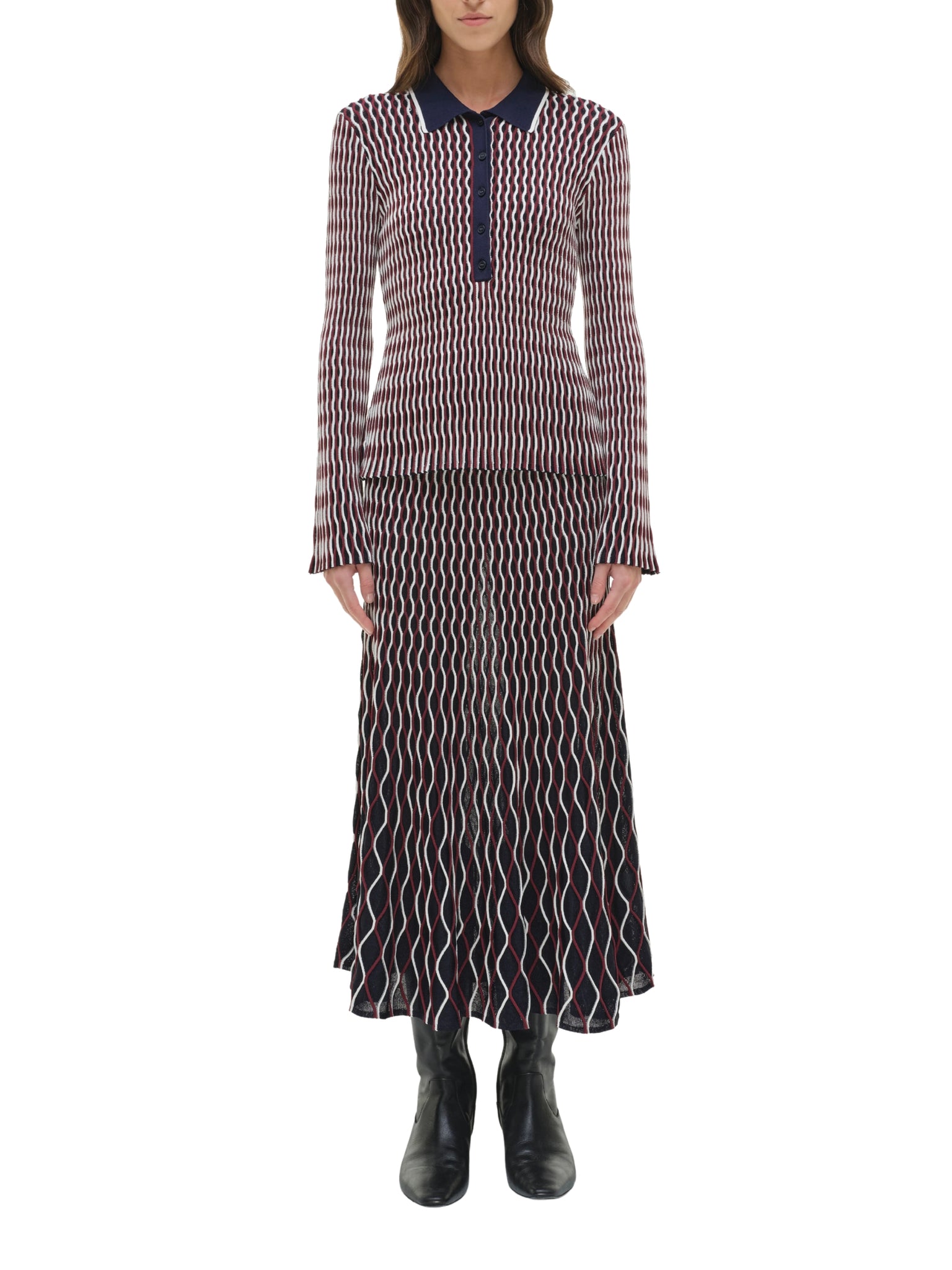 Bring vibrant sophistication to your wardrobe with the Colleen L/S Polo Top by SIMKHAI. Featuring a striking cranberry multi-tone, this long-sleeve polo top blends modern style with comfortable fabric — perfect for chic casual or smart-casual looks in Saudi Arabia.