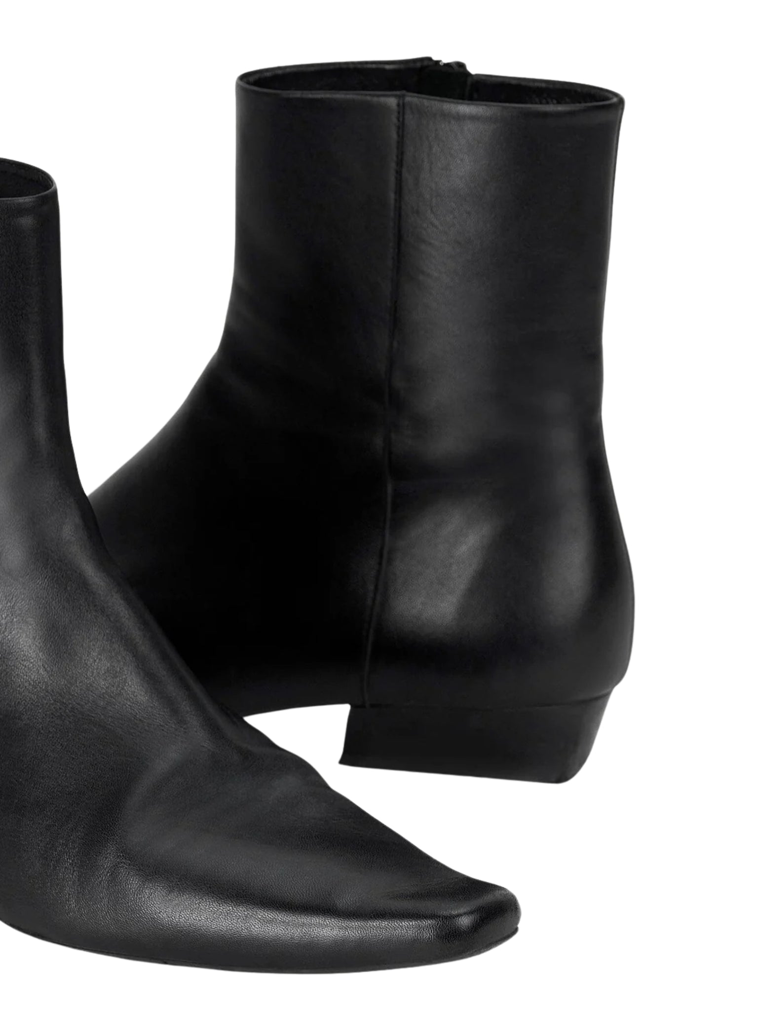 Sleek flat ankle boot design with modern, minimalist aesthetic