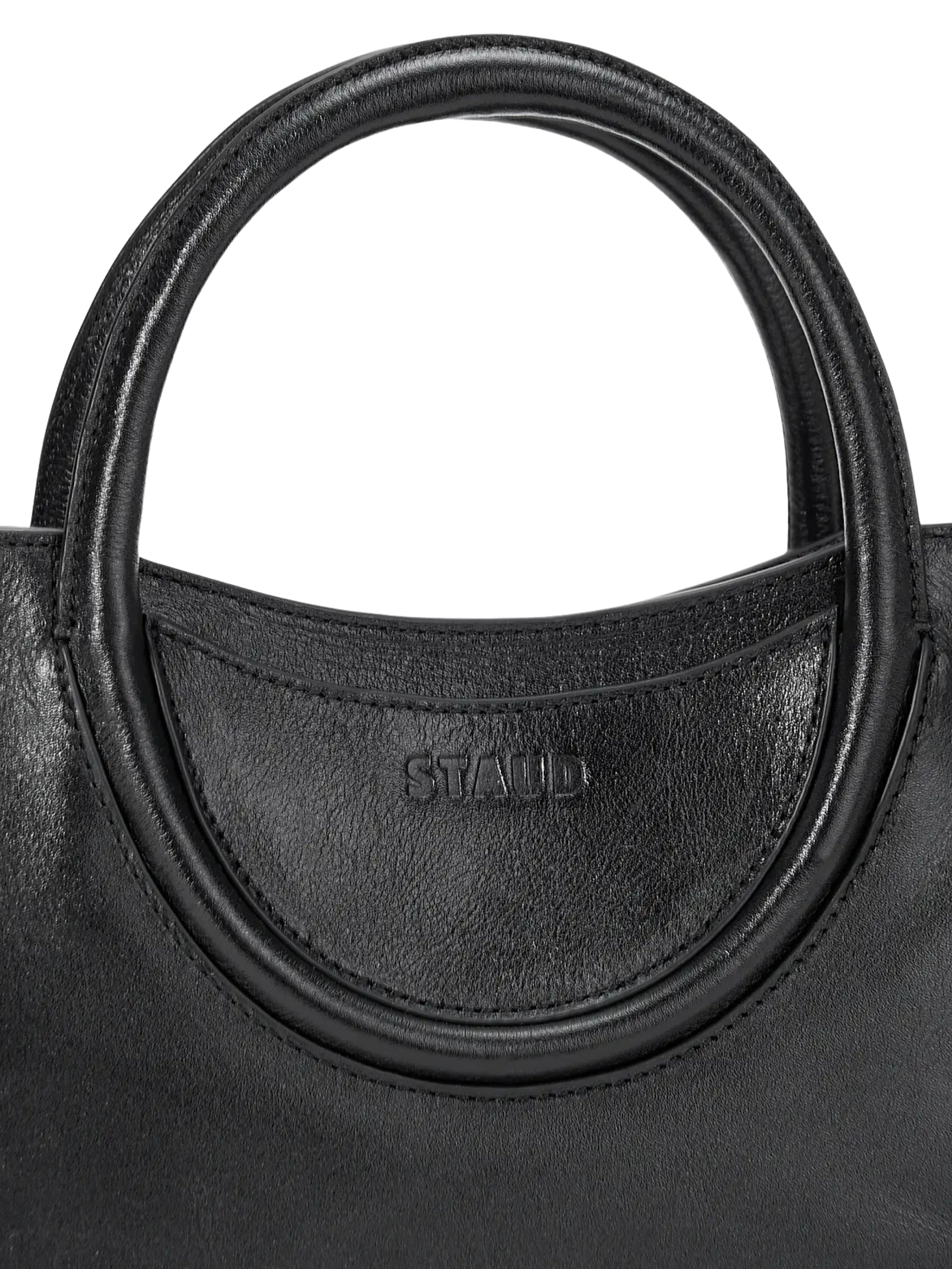 Refined, versatile, and effortlessly modern, the Maude Small Satchel Bag from Staud is a must-have designer accessory. Crafted from premium cow leather, its structured silhouette and minimalist design make it perfect for elevating curated outfits in Saudi Arabia. Ideal for both luxury daywear and chic evening ensembles, this satchel combines functionality with sophisticated style.