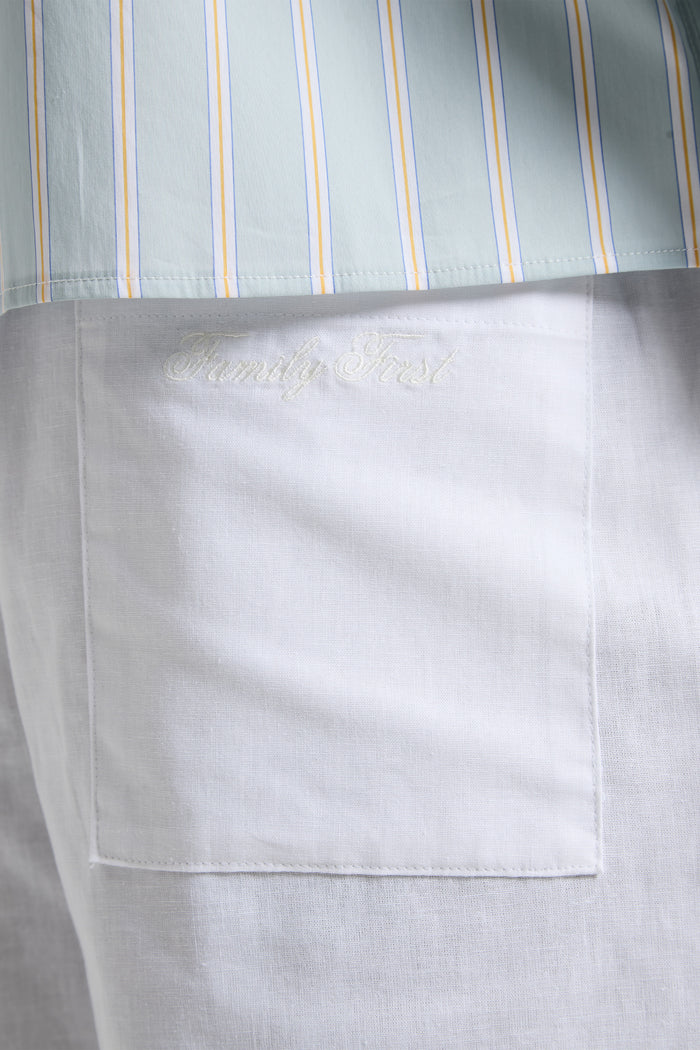 A refined essential designed for relaxed sophistication, the Soft Linen Short Pants by Family First deliver breathable comfort with Italian-made elegance.
