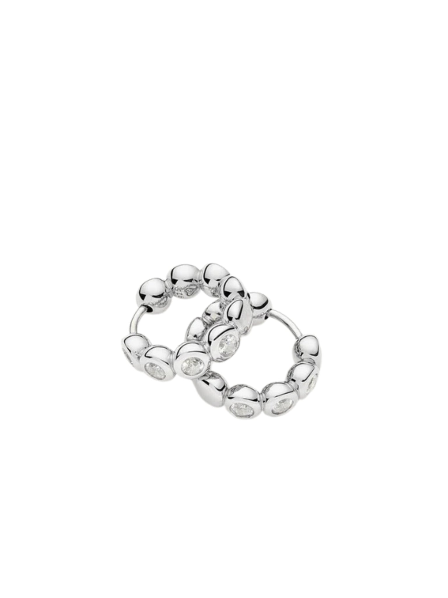 Delicate sparkle with a timeless twist. These small silver hoops by Missoma are adorned with beaded details and cubic zirconia for a refined everyday statement. Wear them solo or layered with other pieces for a curated ear stack.