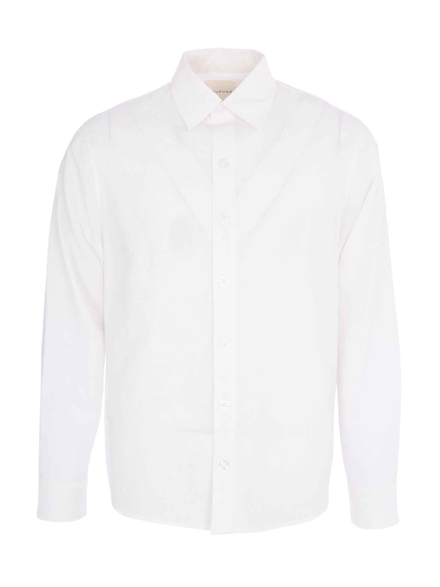 A timeless black long sleeve shirt from Hajruss, crafted in breathable linen for effortless elegance and comfort in the Saudi climate.