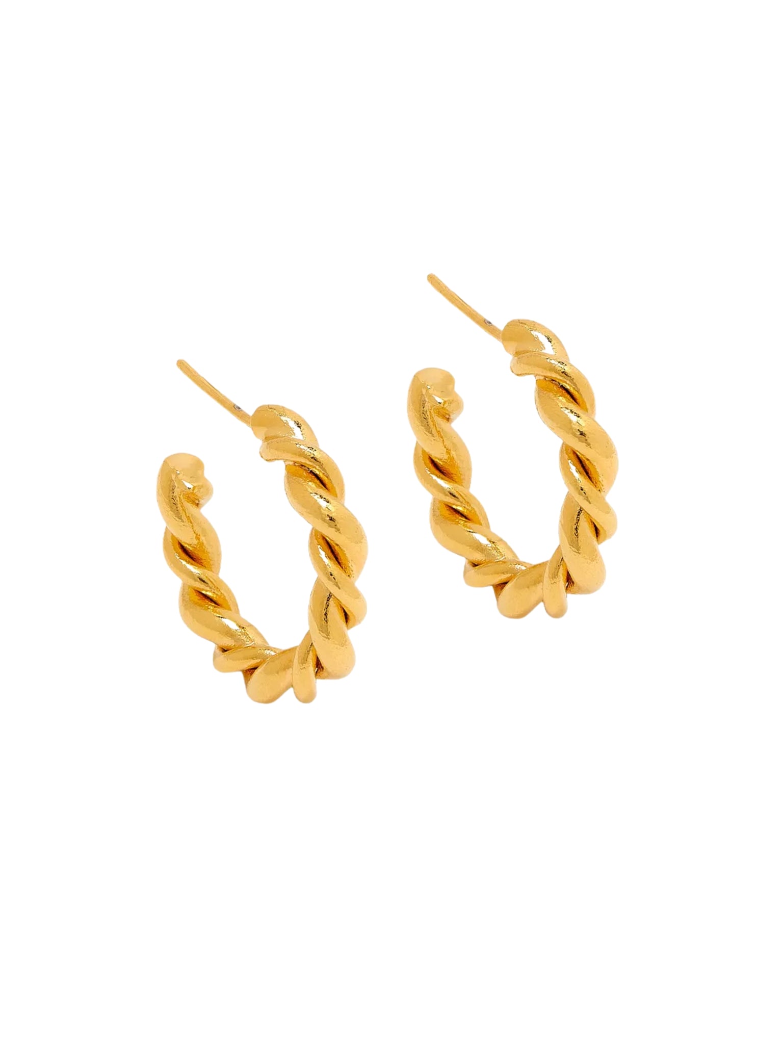Elegant and unique, the VANINA The Fusilli Earrings feature a distinctive spiral design crafted from 18-carat gold-plated brass, perfect for adding a touch of luxury to any outfit.