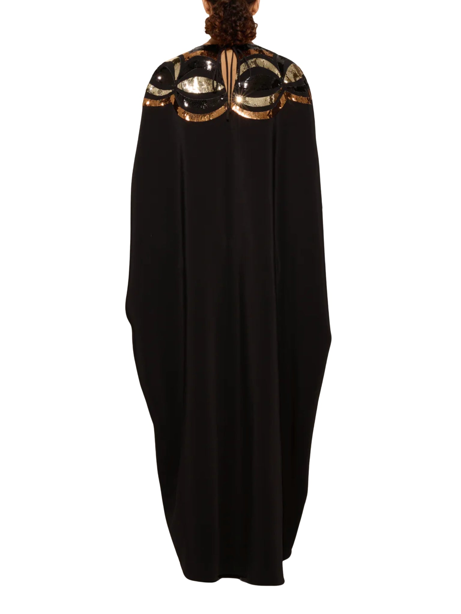 Sophisticated and comfortable, this PUCCI long kaftan in classic black is crafted from a premium viscose-elastane blend. Its flowing silhouette offers effortless elegance, perfect for both casual and formal occasions.