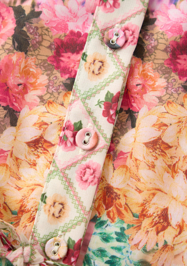 The Lilah Floral Maxi Dress is a standout piece designed to make a statement. Showcasing Marlo’s exclusive floral print in contrasting tones, this flowing maxi dress features long bishop sleeves, elegant button front detailing, and beautiful tiered scalloped trims for a stylish and sophisticated look. Perfect for special occasions or chic everyday wear.