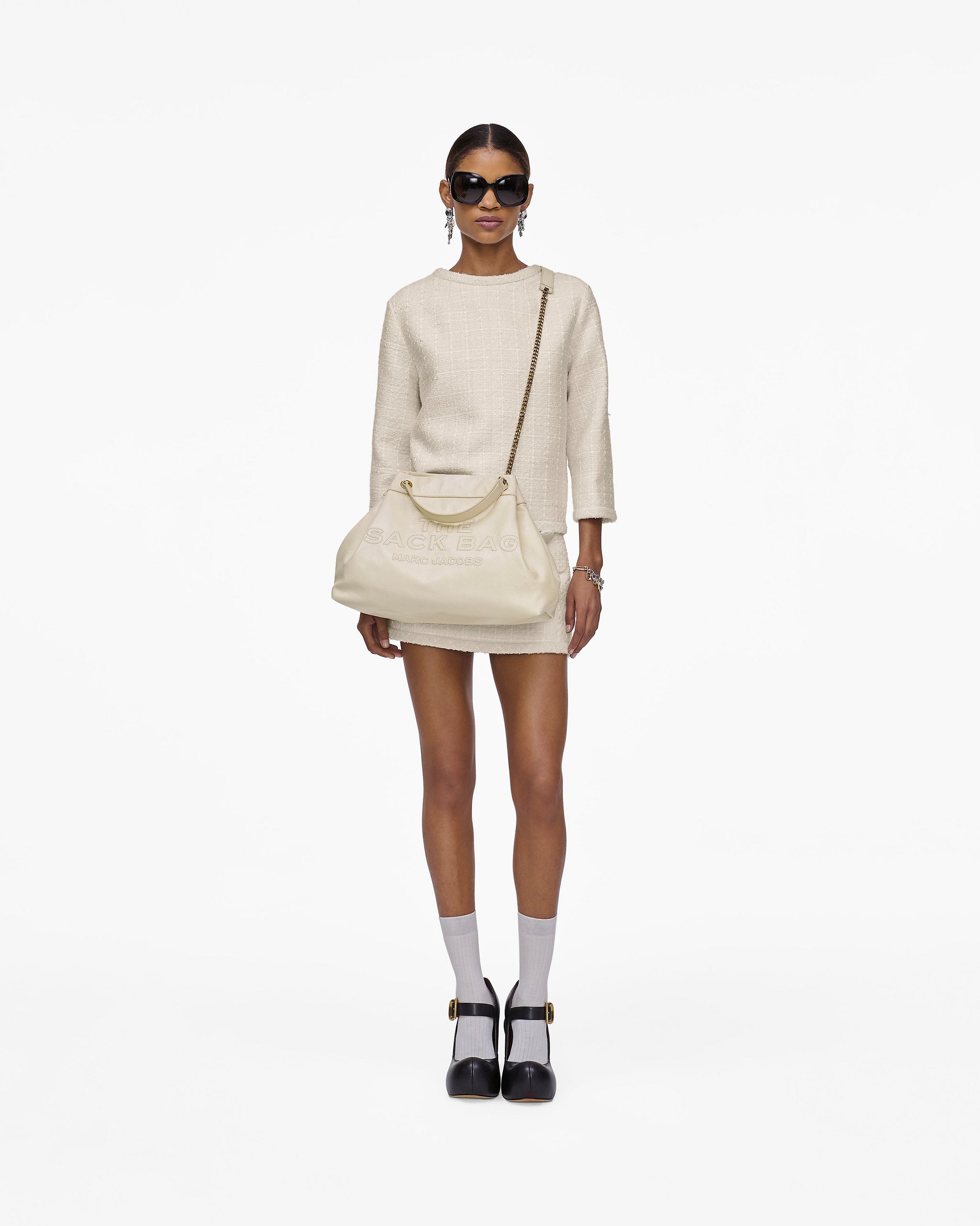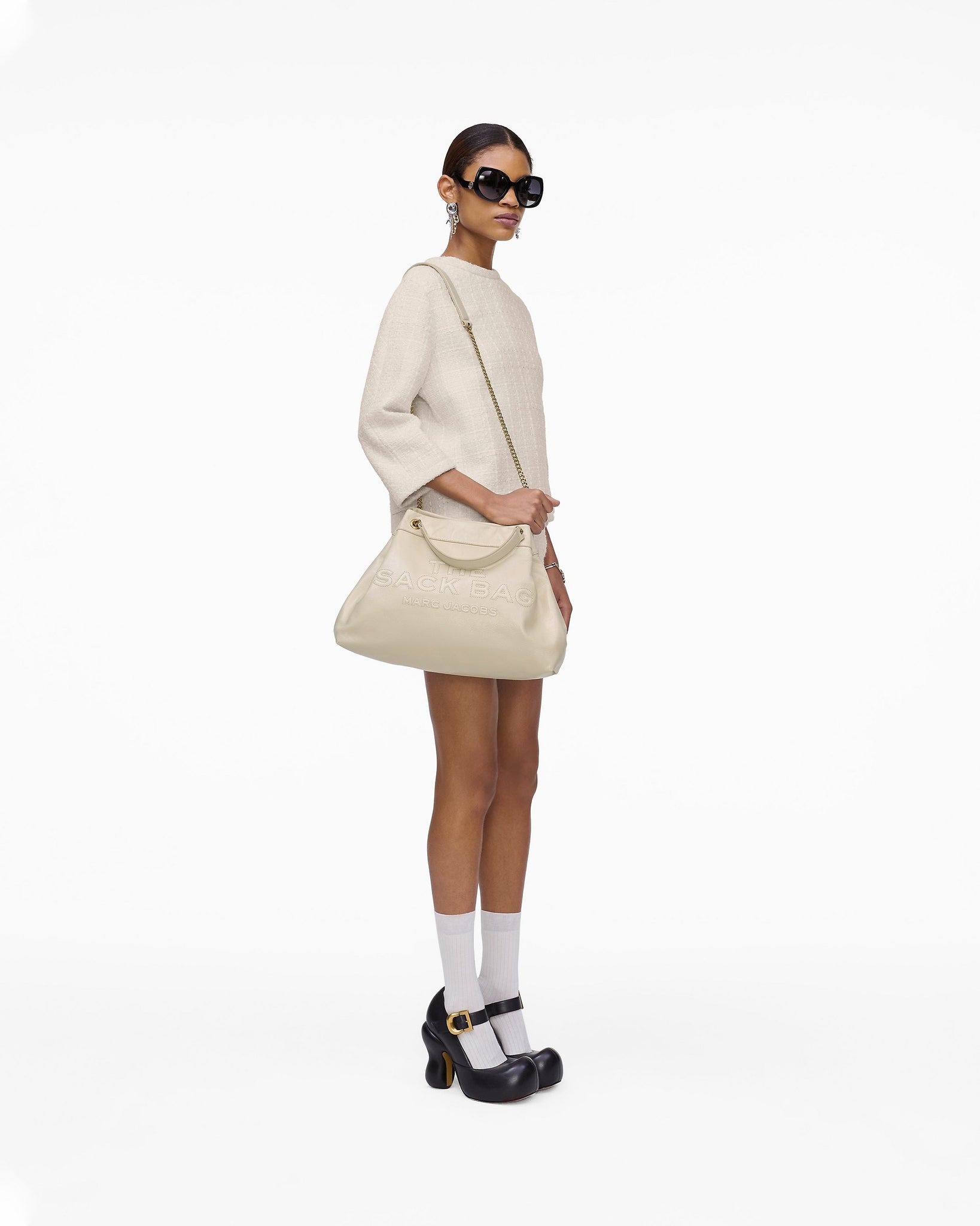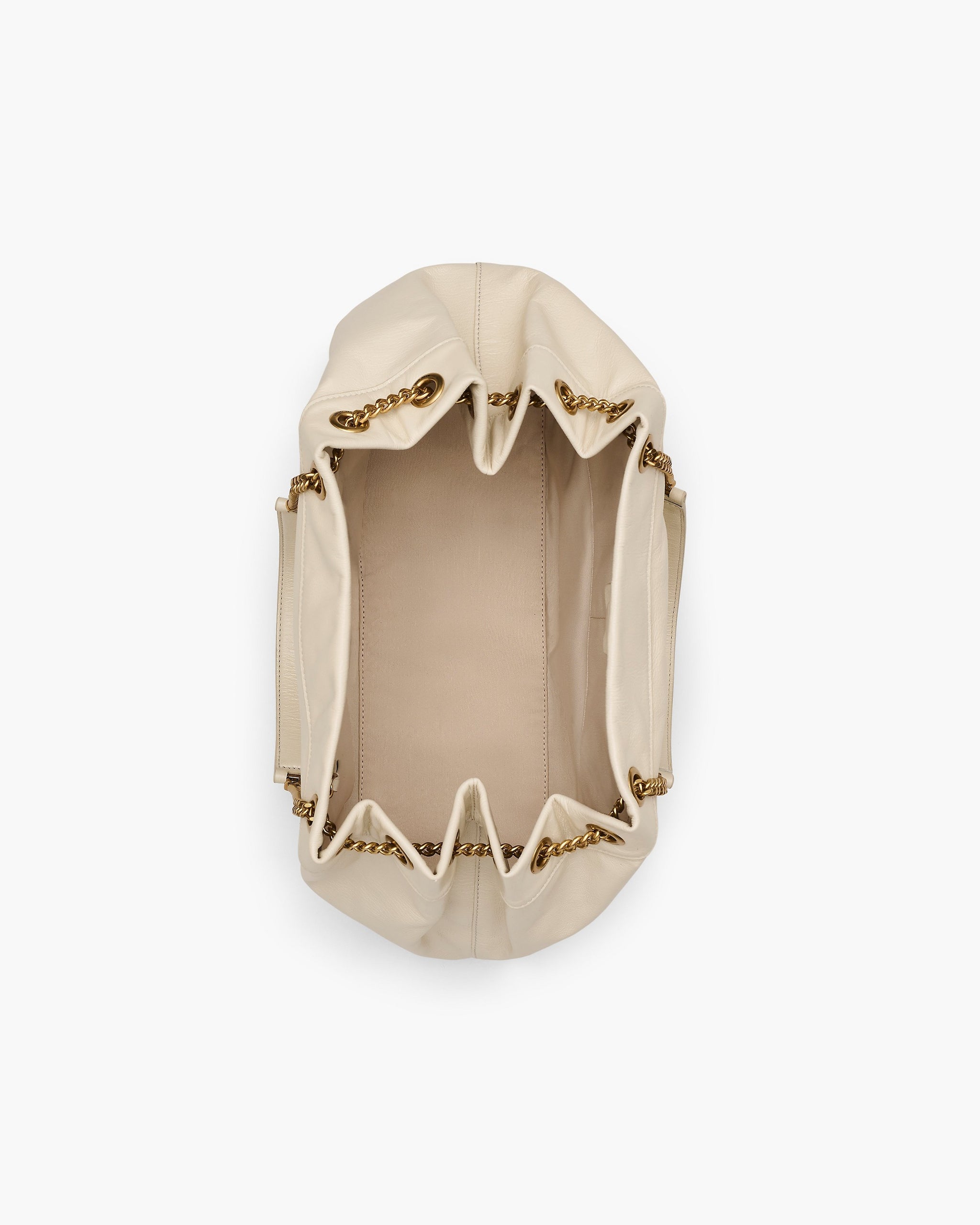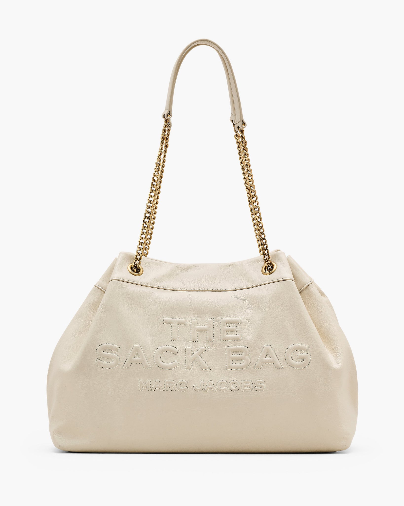 Step up your style with The Large Chain Sack Bag, a sophisticated evolution of the iconic runway-to-reality Sack Bag by Marc Jacobs. Crafted from premium full-grain leather in a chic cloud white shade, this bag effortlessly blends luxe materials with bold design. The standout pull-through leather-and-chain strap adds a contemporary edge, while the magnetic closure keeps your essentials secure. Inside, organized storage with an internal zip pocket and card slot makes it as practical as it is stylish.