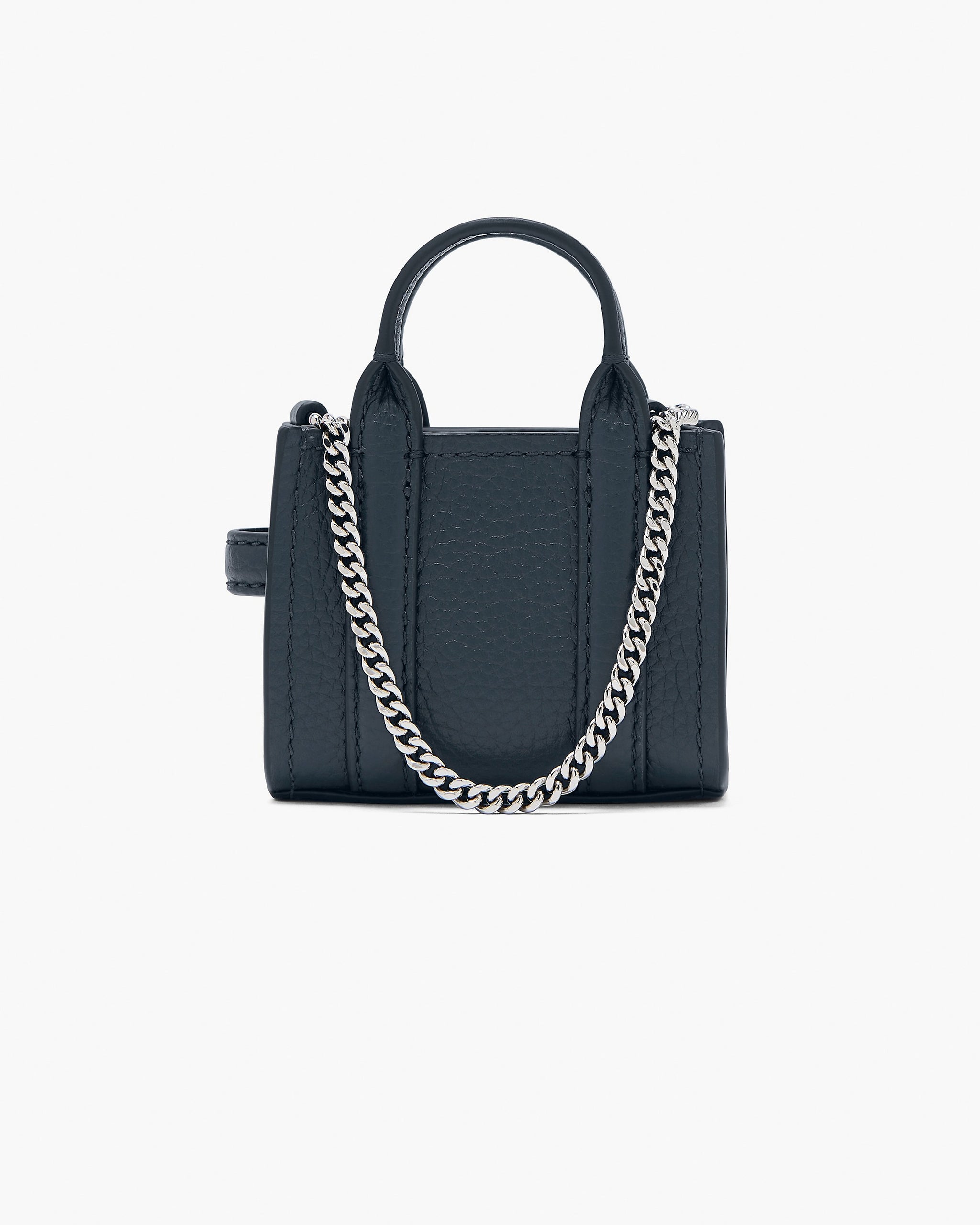 Petite in size but packed with attitude, The Nano Tote Crossbody in Blue Sea captures the spirit of Marc Jacobs in its most playful form. A scaled-down version of the iconic “The Tote Bag,” this statement piece is crafted from premium full-grain leather and finished with signature debossed branding. The elevated removable chain strap adds a refined touch, allowing for elegant crossbody or handheld styling. Perfectly sized to carry essentials—cash, cards, earbuds, lipstick, and keys—this nano silhouette proves that great style comes in small packages.