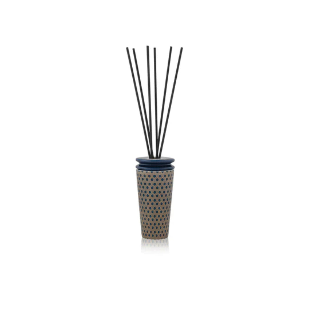 Fill your home with the enduring aroma of fresh citrus, orange flower and musk with the cologne retro diffuser from max benjamin. Inspired by the scent worn by the three founder's father, this homage to family and memories is presented in a smart, art deco-style vase geometrically patterned by rich navy blue with gold-tone accents.