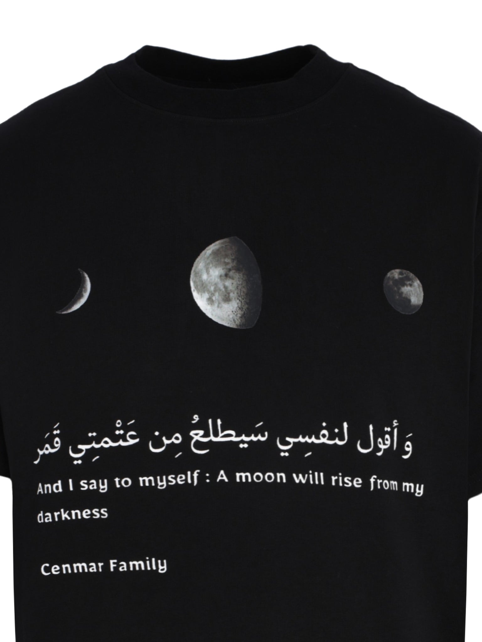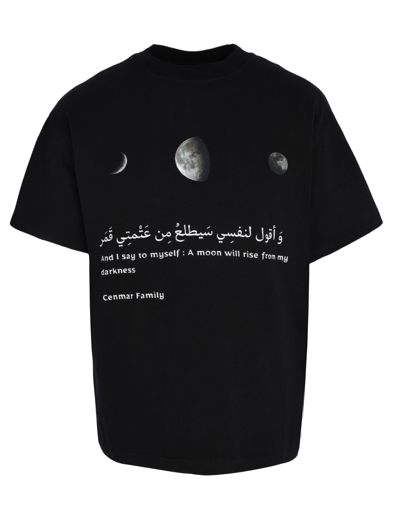 Make a bold style statement with the CENMAR Black T-Shirt, featuring a striking front moon print and crafted for modern comfort—perfect for Saudi Arabia’s streetwear enthusiasts.