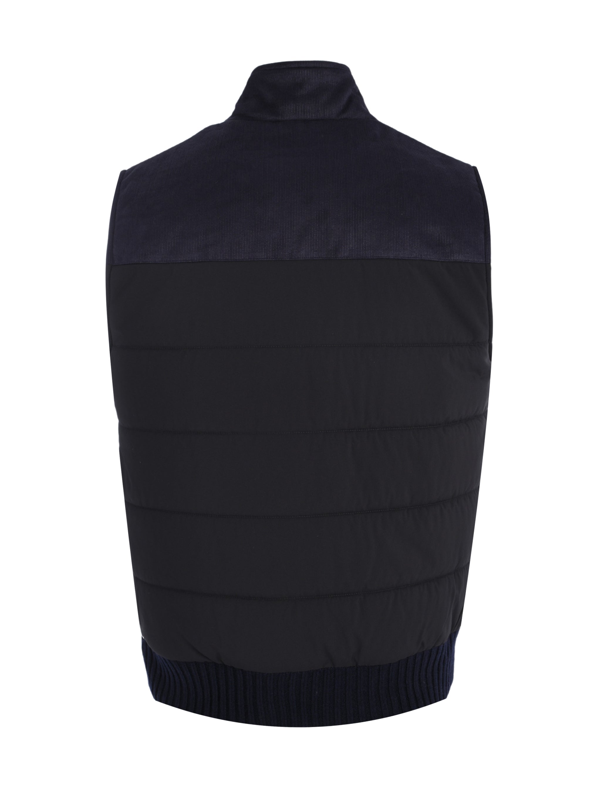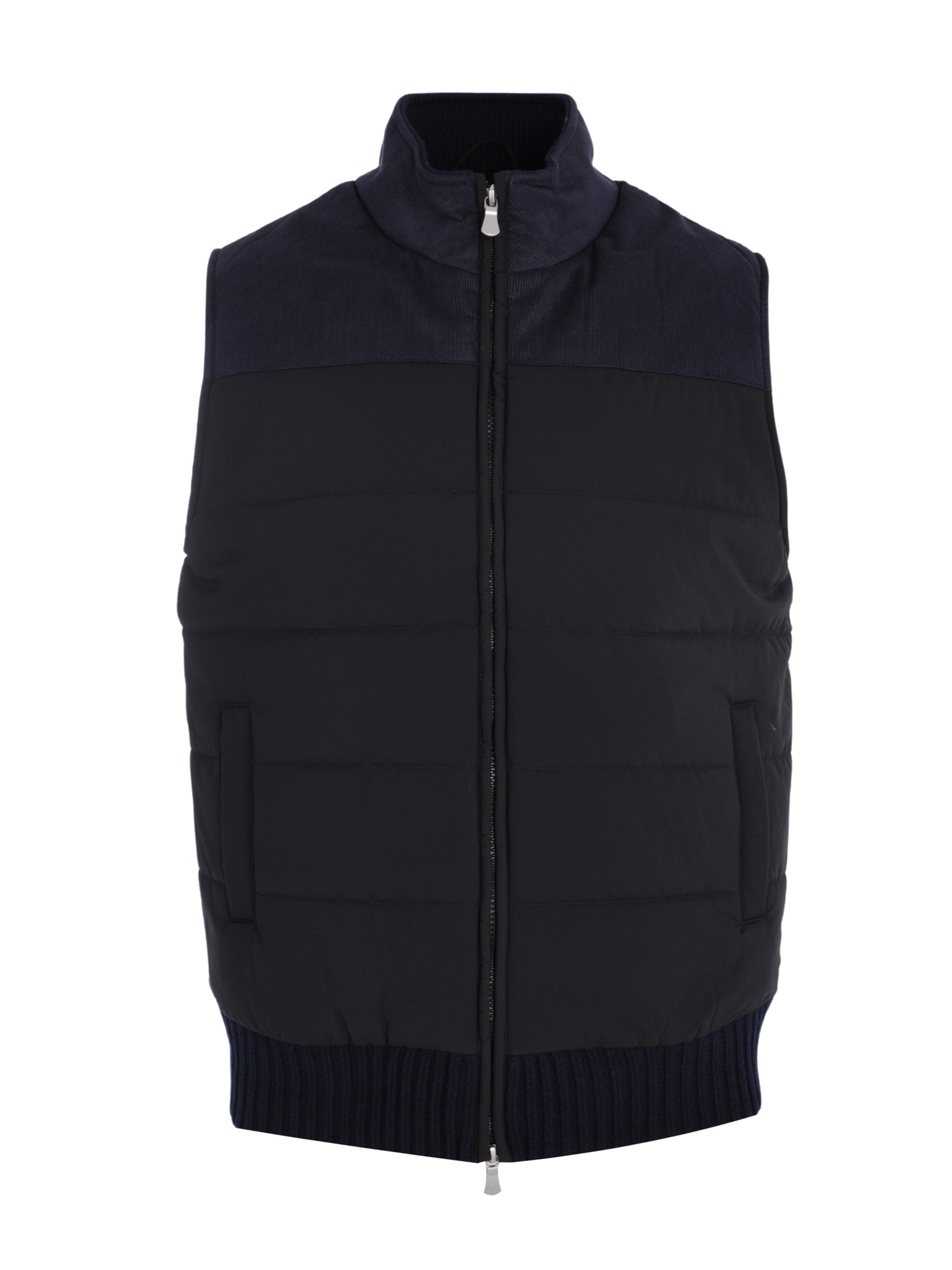 Modern layering, refined. The Gran Sasso Sleeveless Jacket in navy combines lightweight warmth with contemporary Italian tailoring — perfect for transitional dressing.