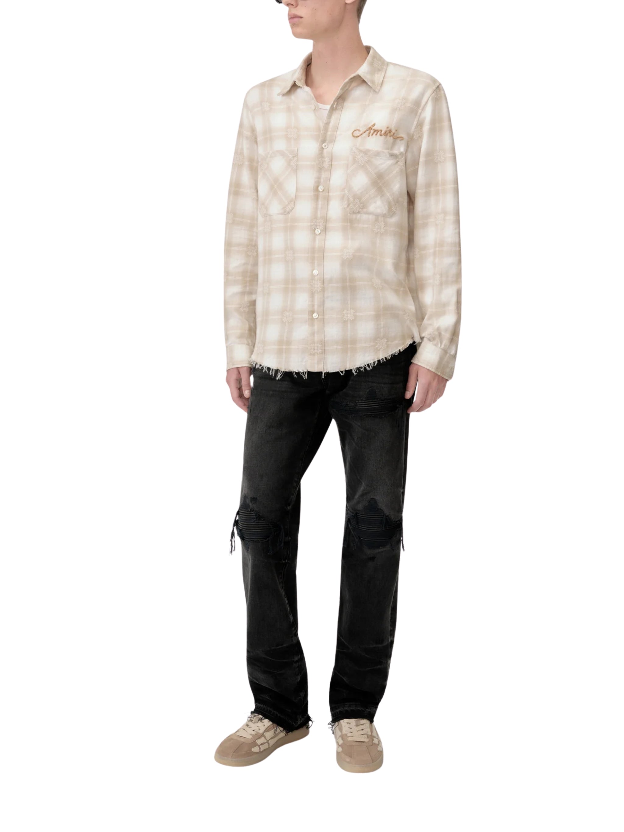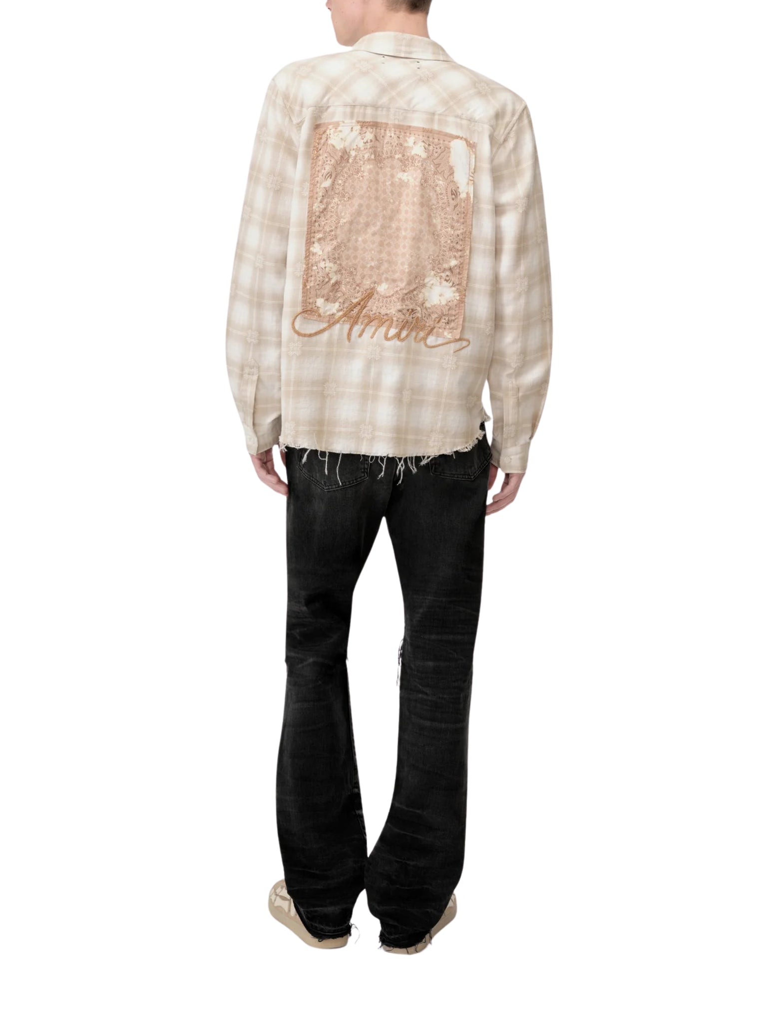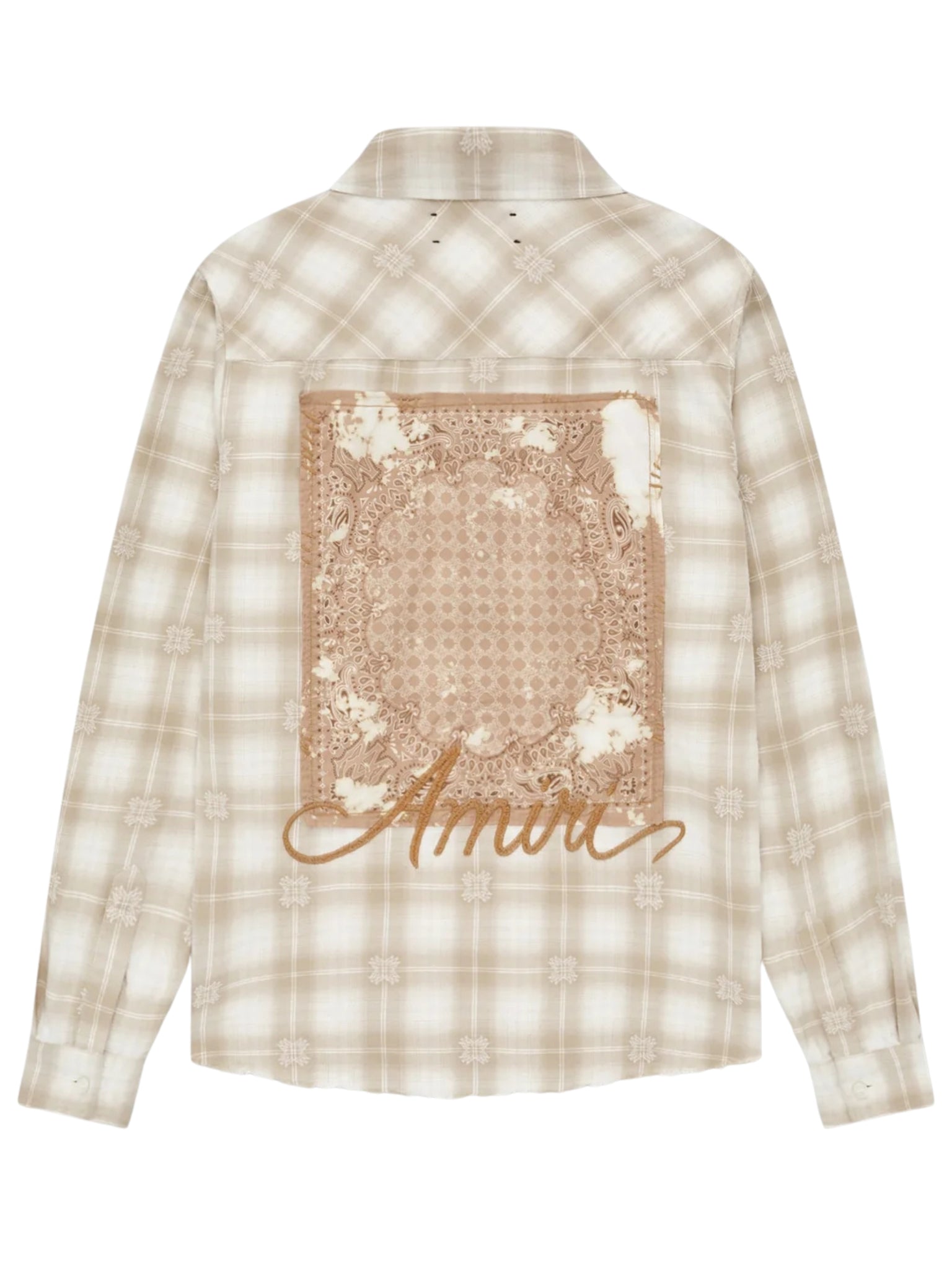 The AMIRI Bleach Bandana Patch Flannel delivers a bold fusion of West Coast grunge and luxury craftsmanship. Made from 100% premium cotton, this standout shirt features a bleach-washed finish and signature bandana patchwork offering a rebellious edge with refined detail. Designed for those who express identity through statement streetwear.