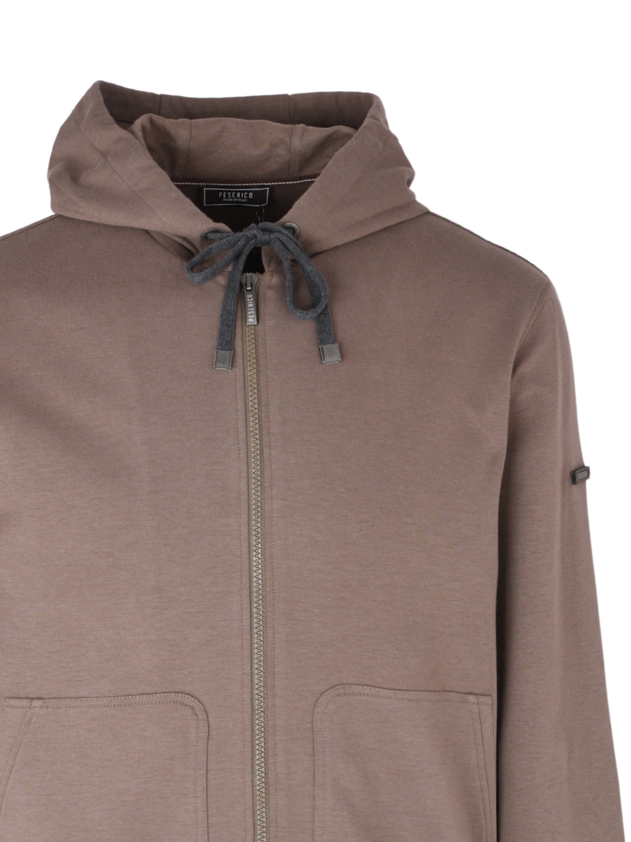 Stay cozy without compromising style in this fleece sweatshirt by Peserico. Featuring a knit drawstring hood, two-way zip closure, and practical front patch pockets, this regular-fit piece combines comfort with refined Italian craftsmanship perfect for layering during cooler days.