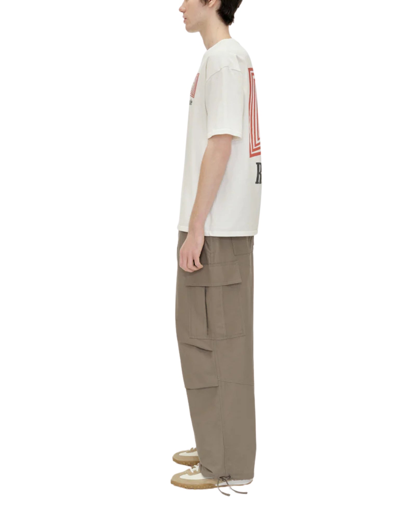 A modern streetwear staple with a vintage edge, the Chevron Logo Repeat Tee by Rhude delivers effortless style and everyday comfort. Crafted in white cotton with a custom vintage wash, this short-sleeve tee features bold Chevron Box logo graphics for a statement look suited to casual wear in Saudi Arabia.