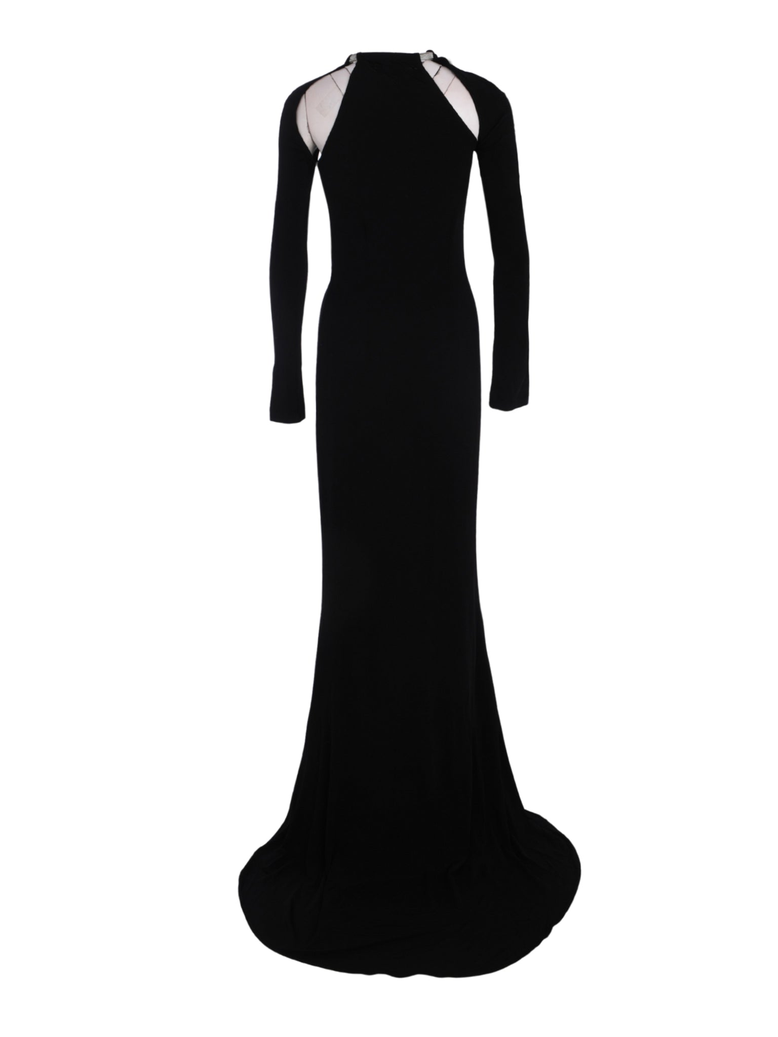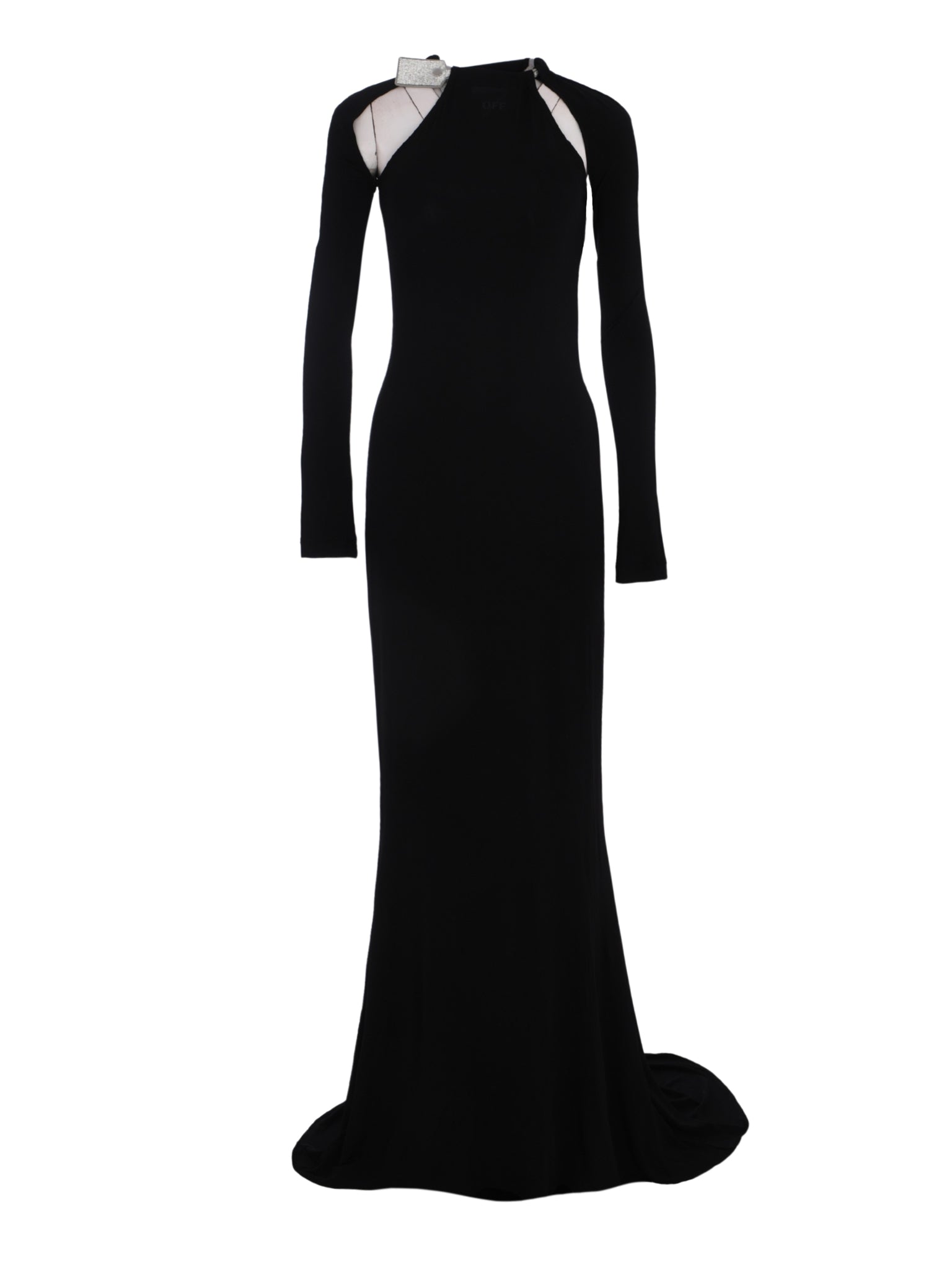 SEC SKIN CRYSTAL TIE LONG DRESS BLACK