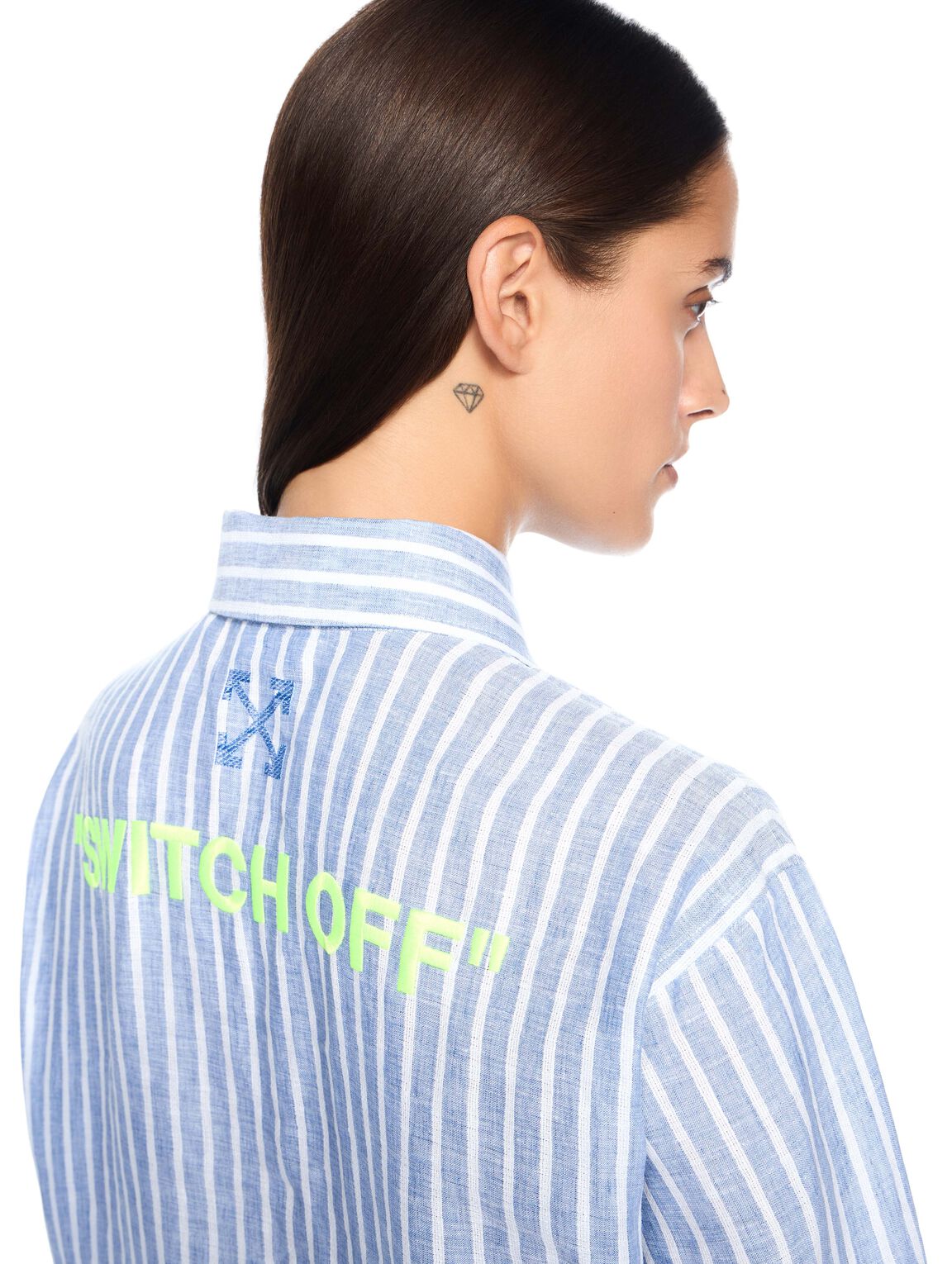 Redefining smart casual, the Striped Over Shirt Dress by Off-White™ combines clean tailoring with subtle streetwear cues. Crafted from breathable 100% linen, it features a sleek, elongated silhouette, minimalist stripe detailing, and the brand’s iconic slogan motif at the back. A refined piece designed for effortless style in Saudi Arabia’s evolving urban fashion scene.
