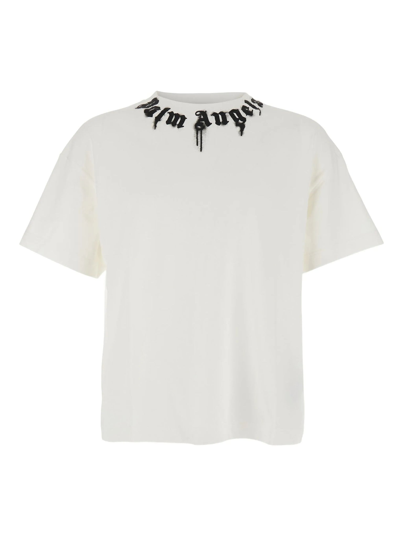 Elevate your casual wardrobe with this Palm Angels tee, featuring a spray-paint-effect logo graphic at the neckline. A bold yet wearable piece that blends street art vibes with premium quality.