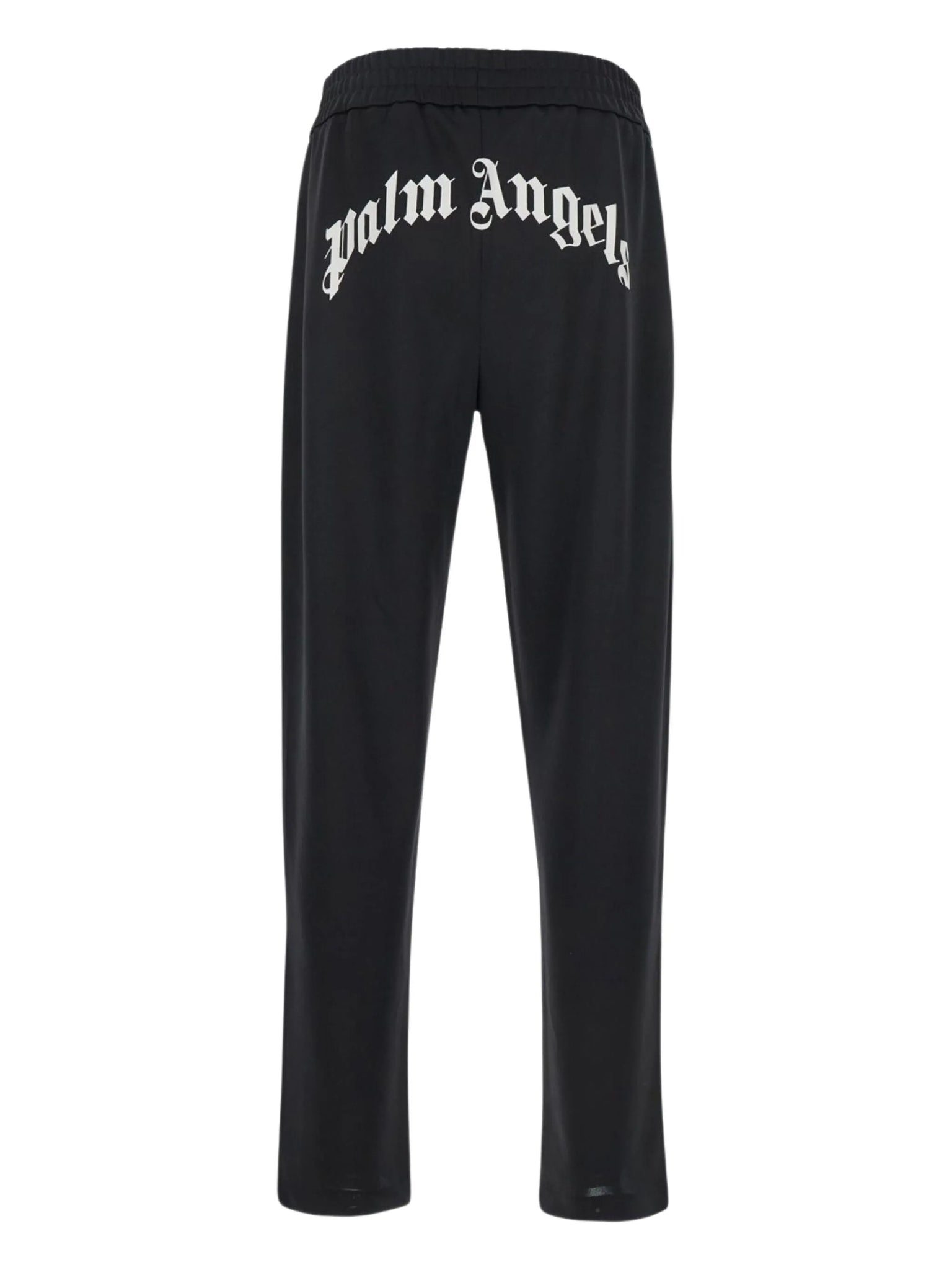Step up your streetwear game with the Palm Angels Back Curved Logo Track Pants in classic black with off-white accents. Designed for both style and comfort, these track pants feature the signature curved logo at the back for an iconic, contemporary look.