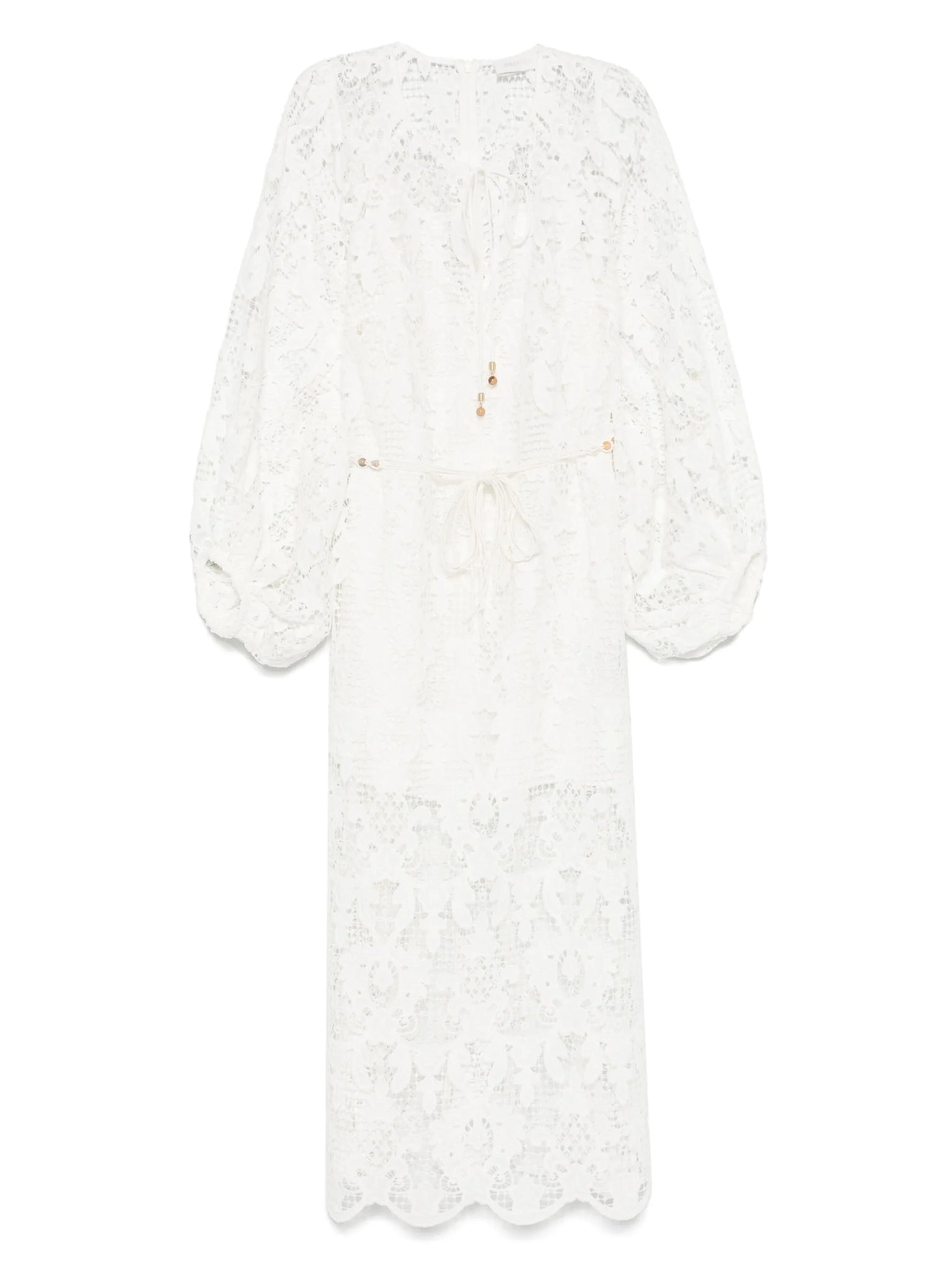 Ethereal and timeless, the Coco Lace Midi Dress in Ivory by Zimmermann captures delicate femininity with intricate lacework and graceful tailoring. Designed to transition seamlessly from day to evening, it offers a romantic silhouette with refined elegance.