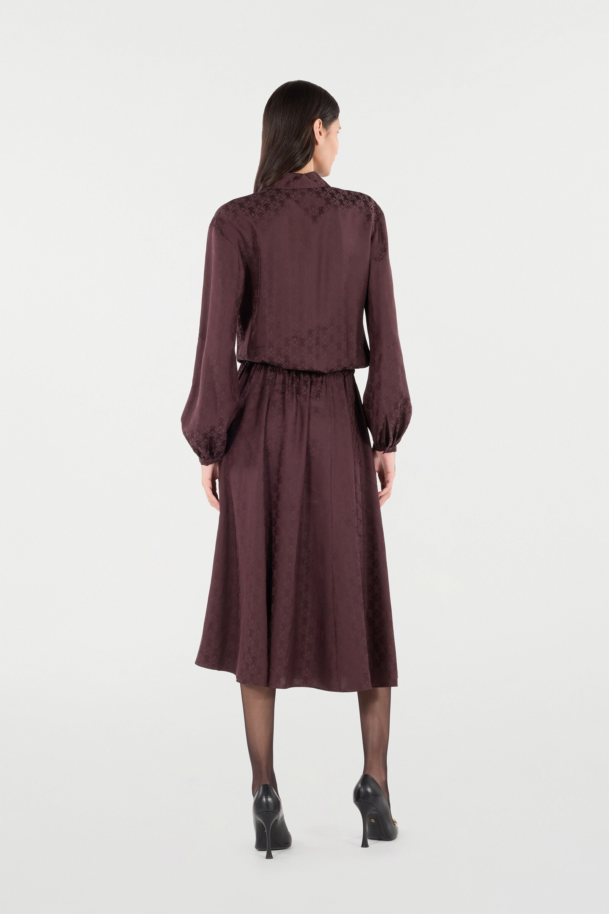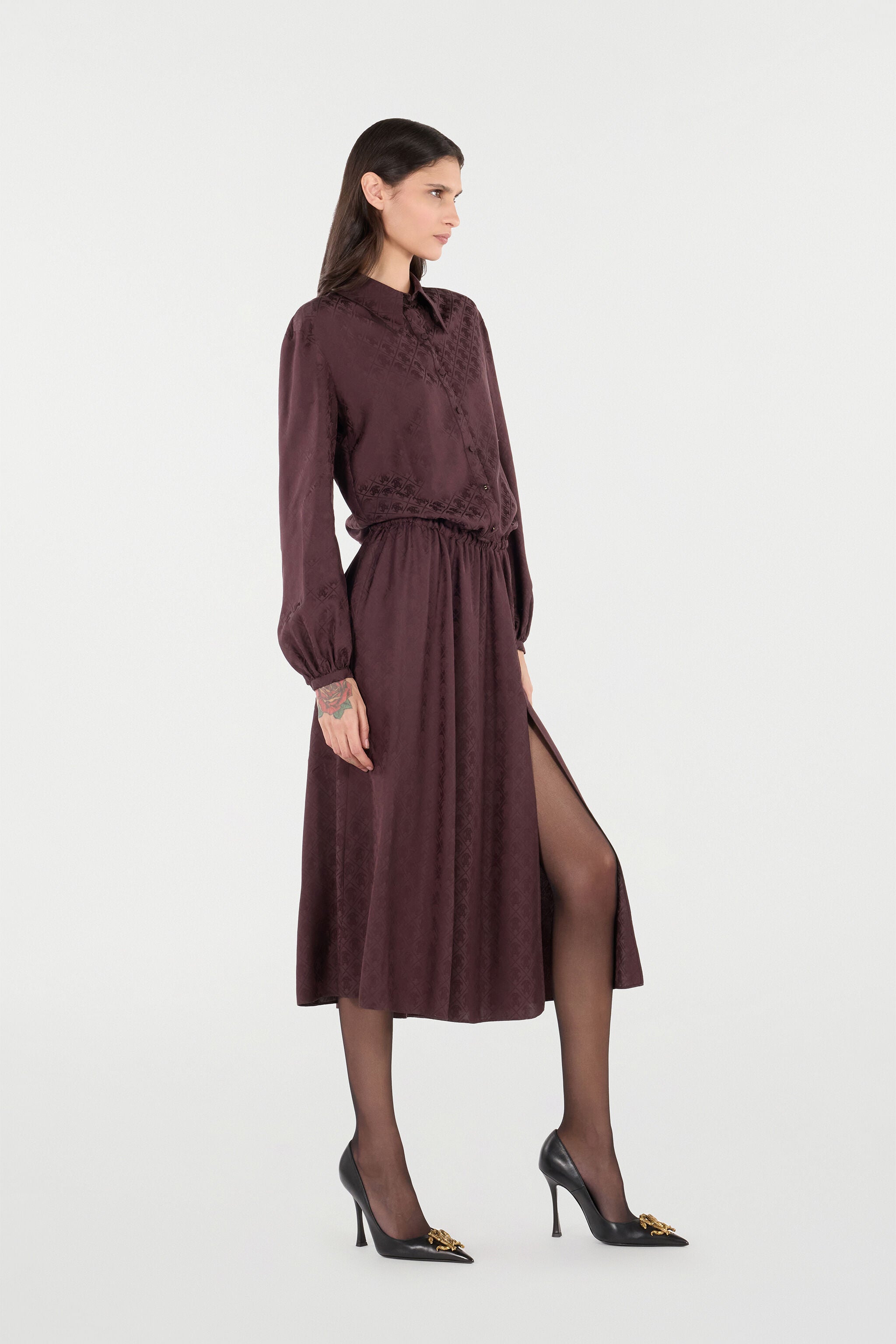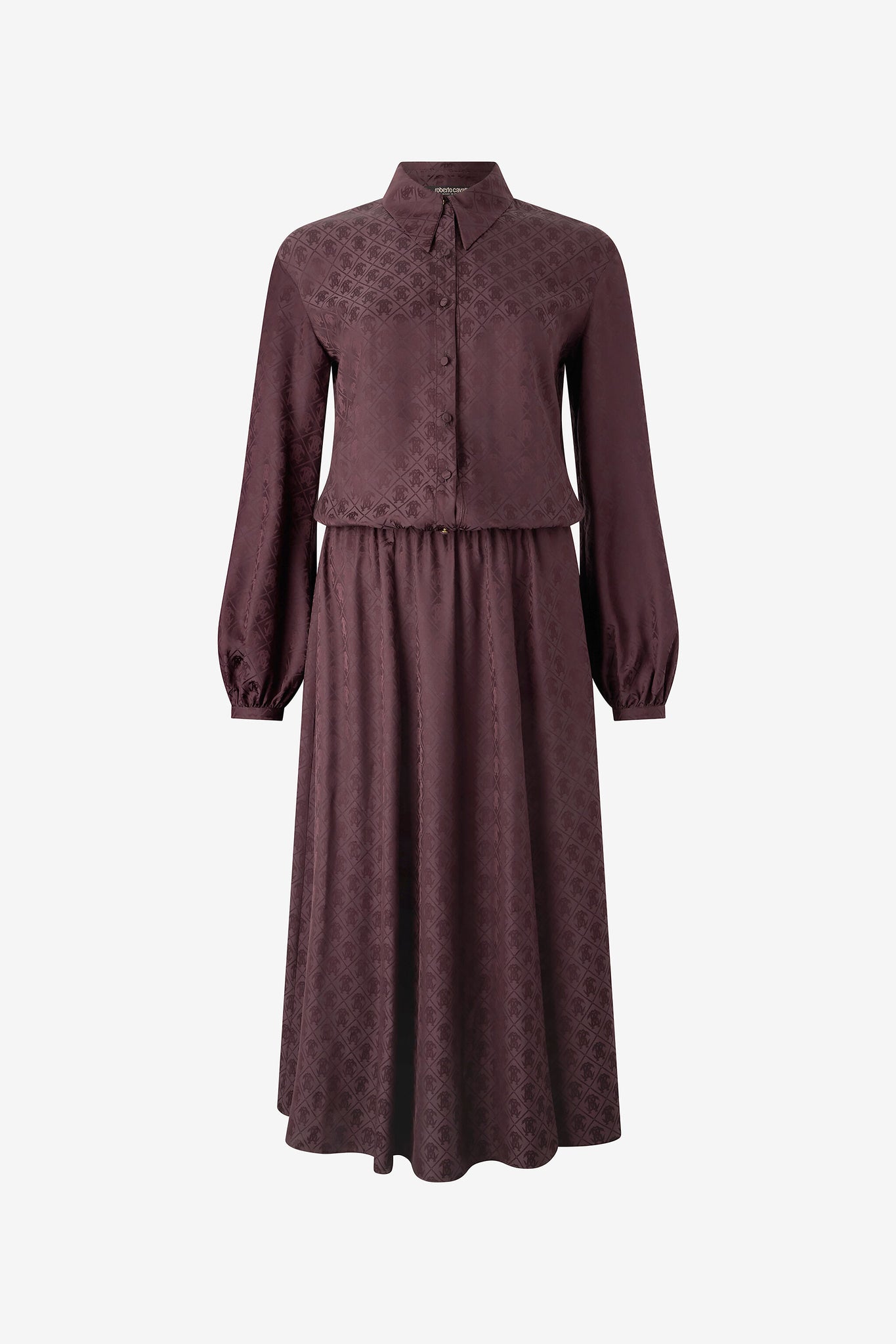 Refined and bold, this shirt dress by Roberto Cavalli in deep chocolate brown features the iconic Mirror Snake monogram — a signature of fierce femininity. Crafted in a luxurious viscose-silk blend, it's designed for confident women who embrace power and elegance in every step.