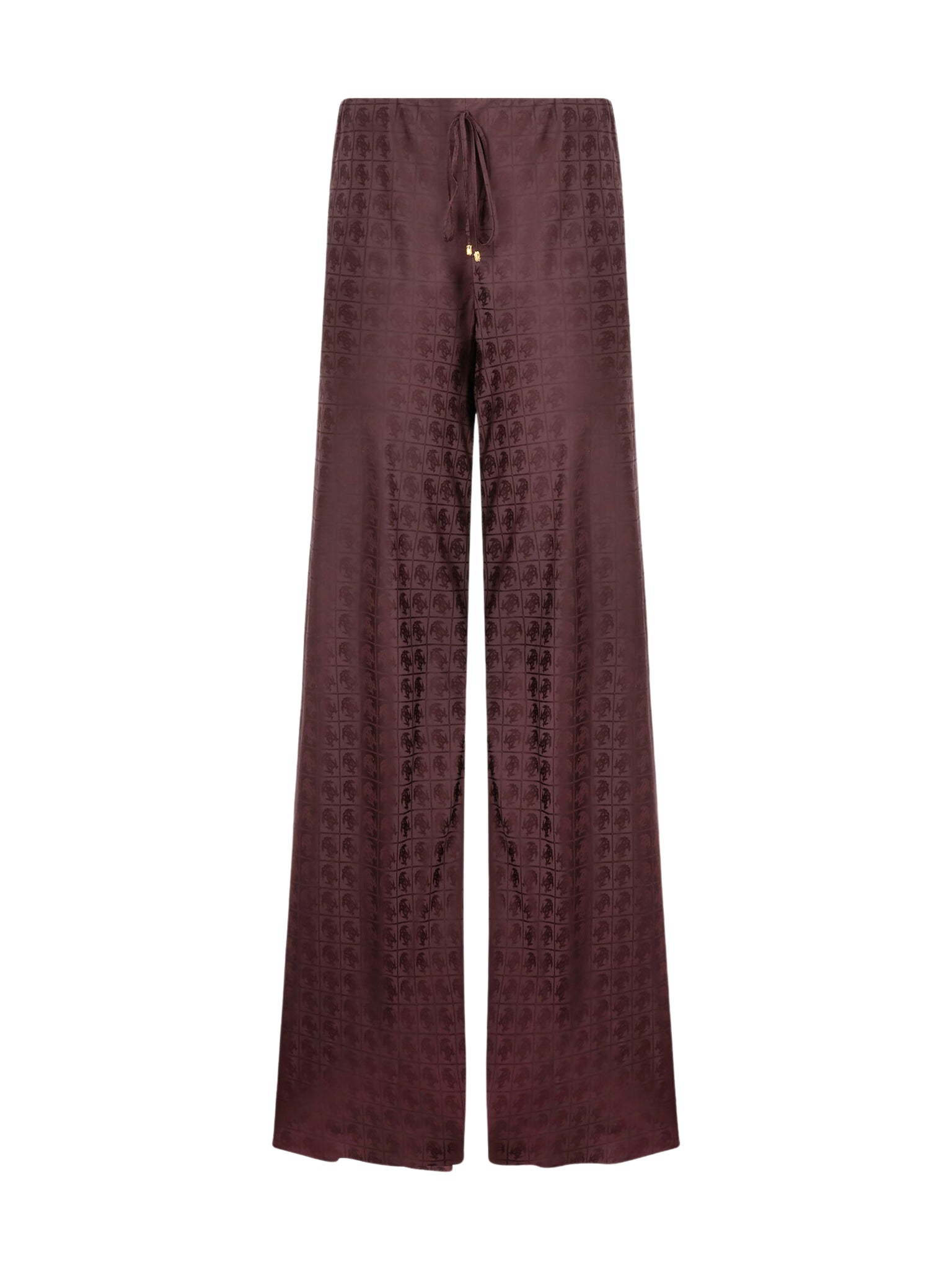 Elevate your wardrobe essentials with these chocolate-hued trousers by Roberto Cavalli. Crafted from a fluid silk-viscose blend, they offer both structure and softness—ideal for refined everyday looks or elevated evening styling.
