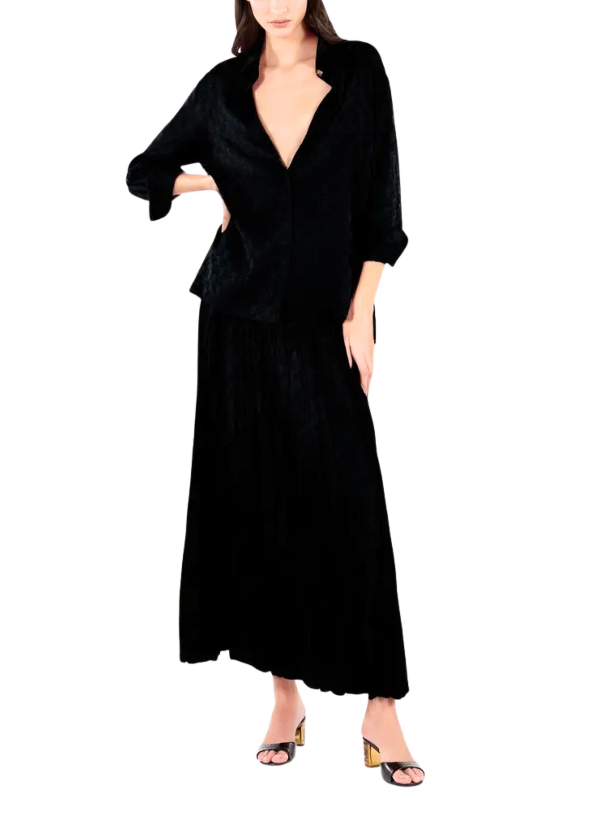 Classic meets contemporary in this timeless black (nero) shirt by Roberto Cavalli. Crafted from a smooth silk-viscose blend, it delivers effortless elegance and everyday sophistication—perfect for the refined Saudi wardrobe.