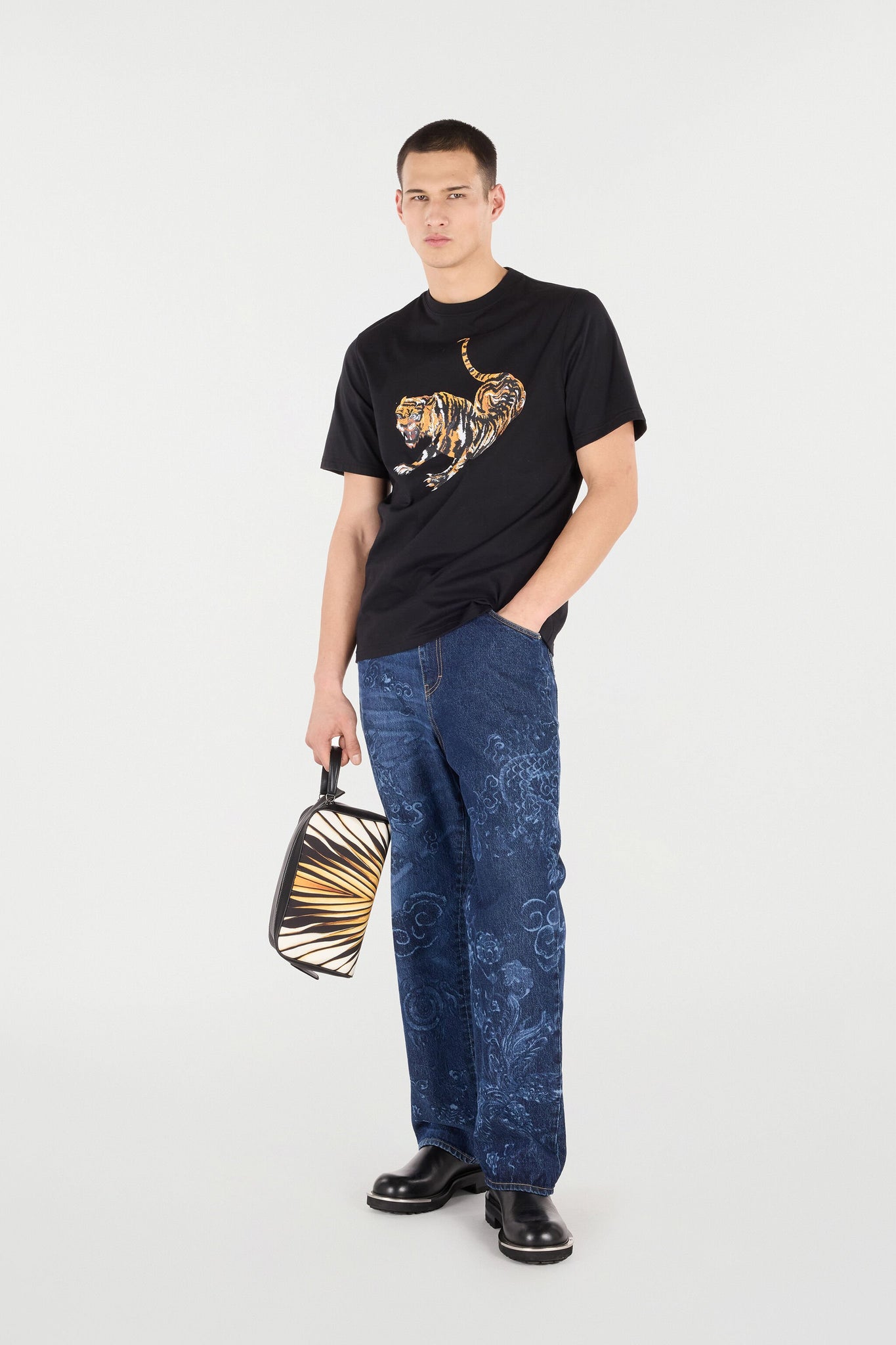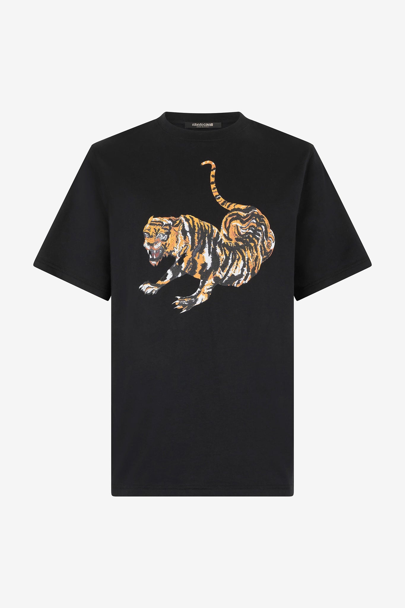Make a bold statement with this black cotton t-shirt from Roberto Cavalli, featuring the brand’s iconic tiger motif. A symbol of power and individuality, this piece captures the essence of Cavalli’s daring aesthetic—perfect for standout street style in Saudi Arabia.