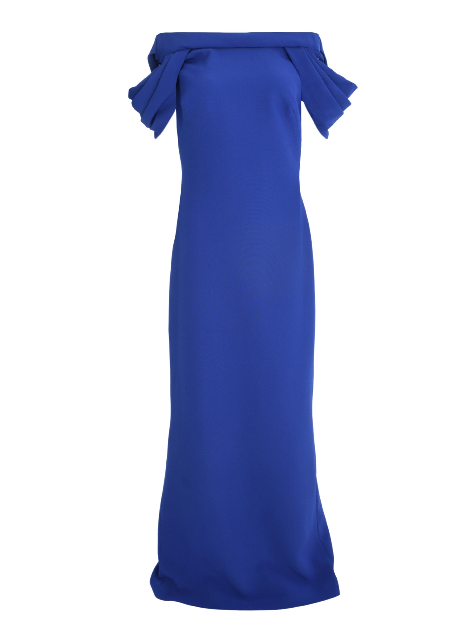 RIVA CAP SLEEVE COLUMN GOWN WITH SCULPTURAL DRAPING