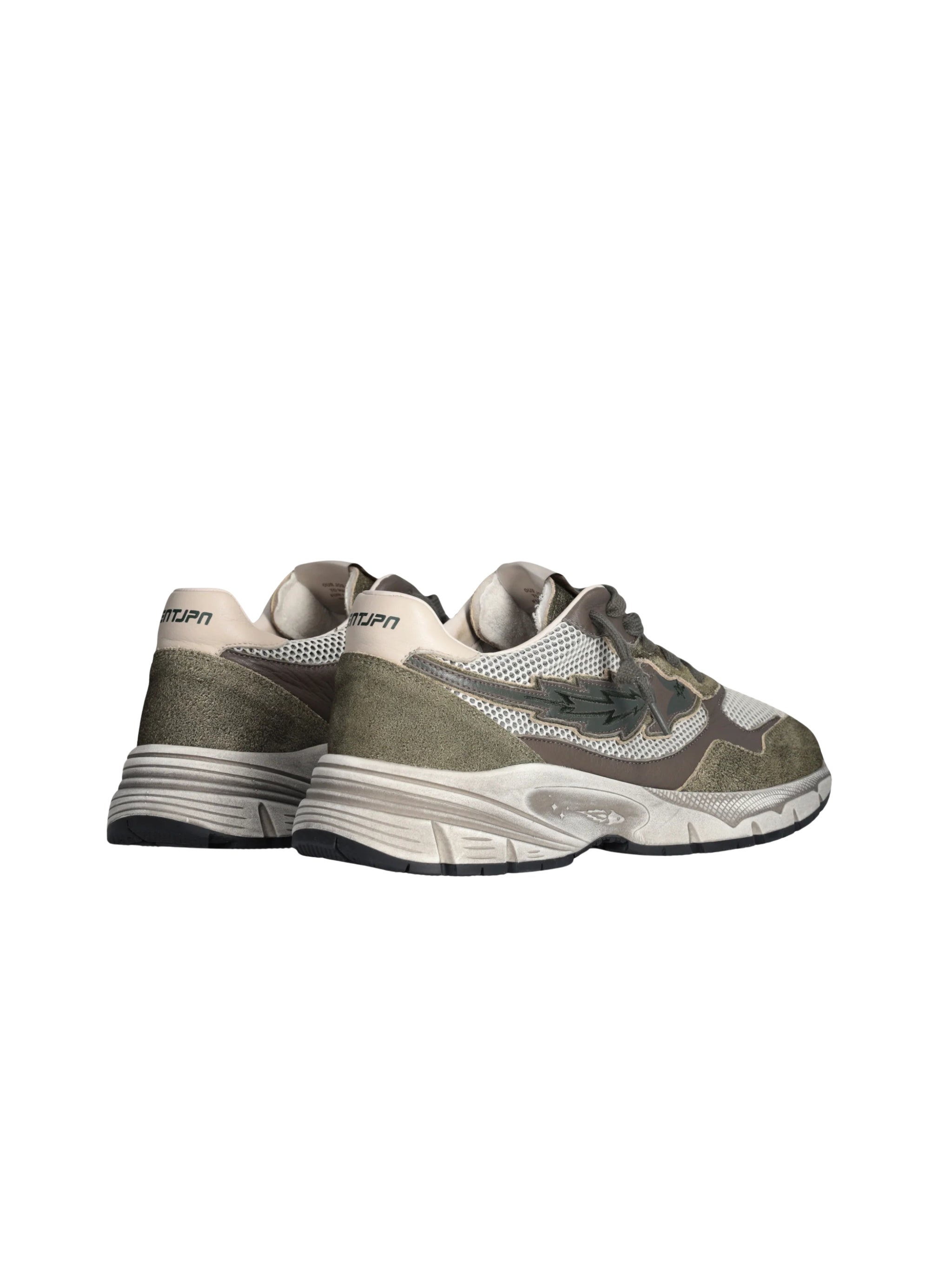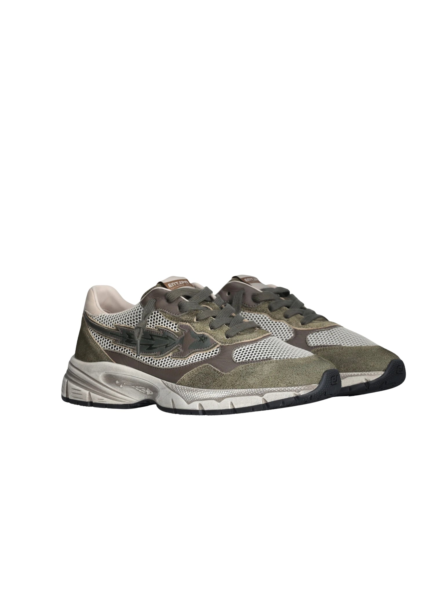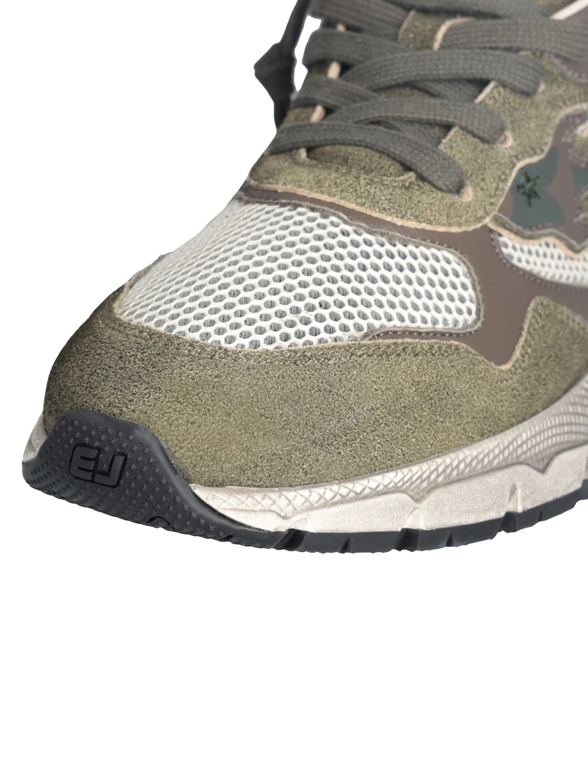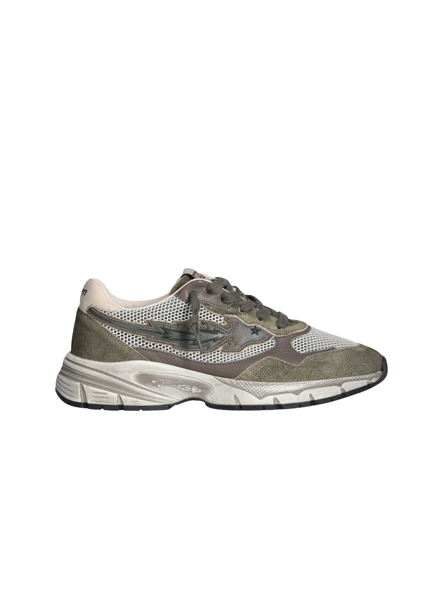 Spray-effect bicolour leather and mesh upper for a distinctive, worn-in appeal