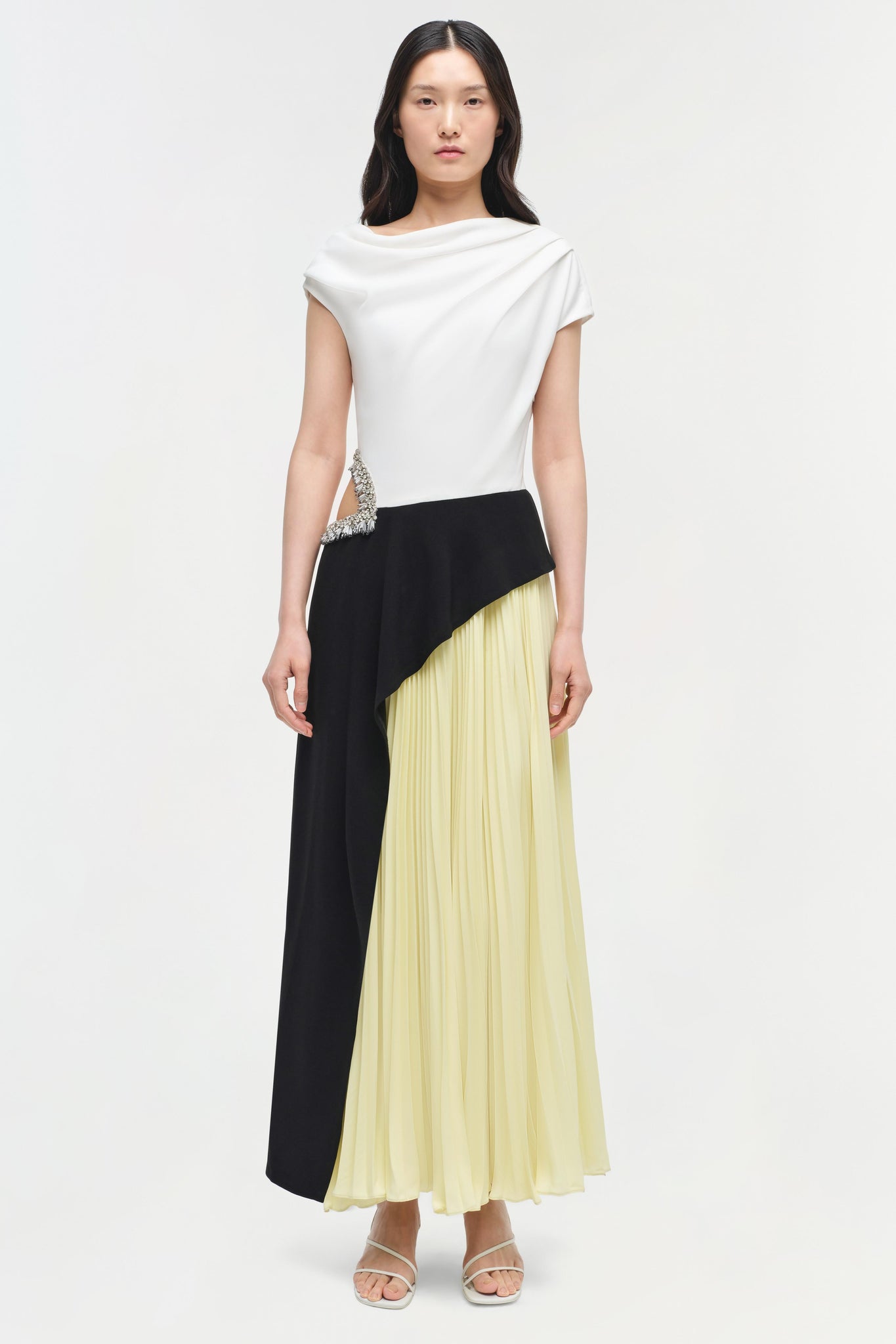 Gathered Crepe Upper – Adds dimension and sculpted fit