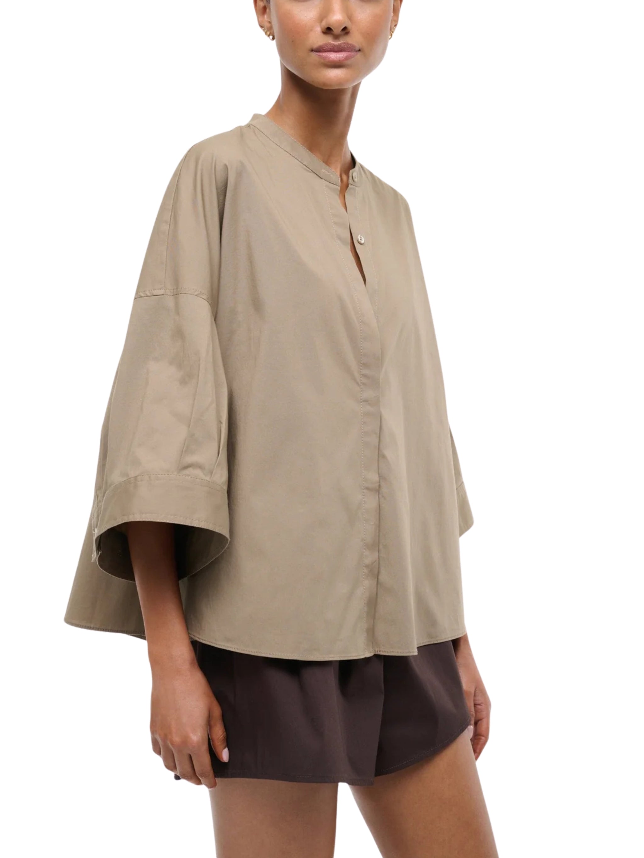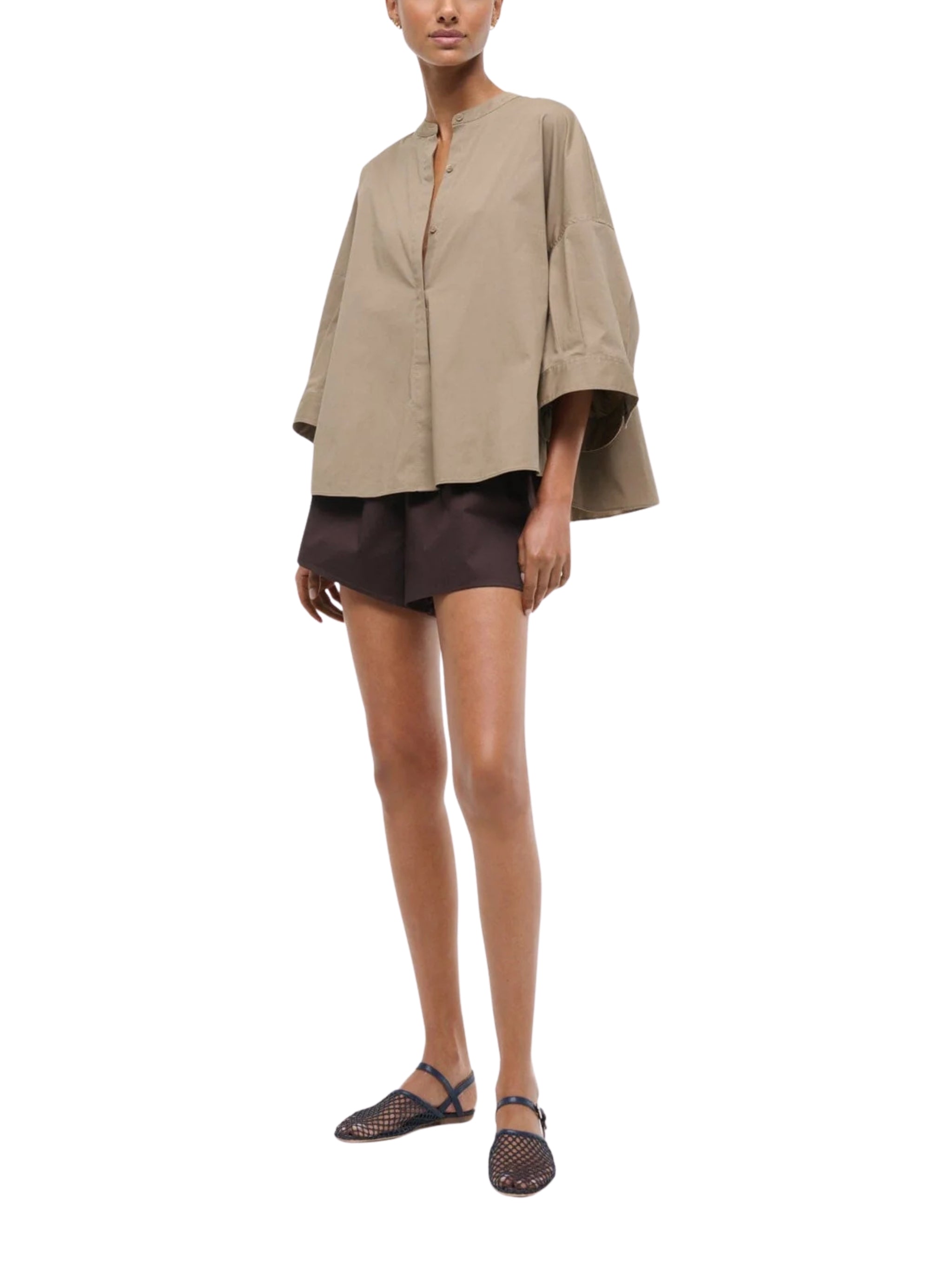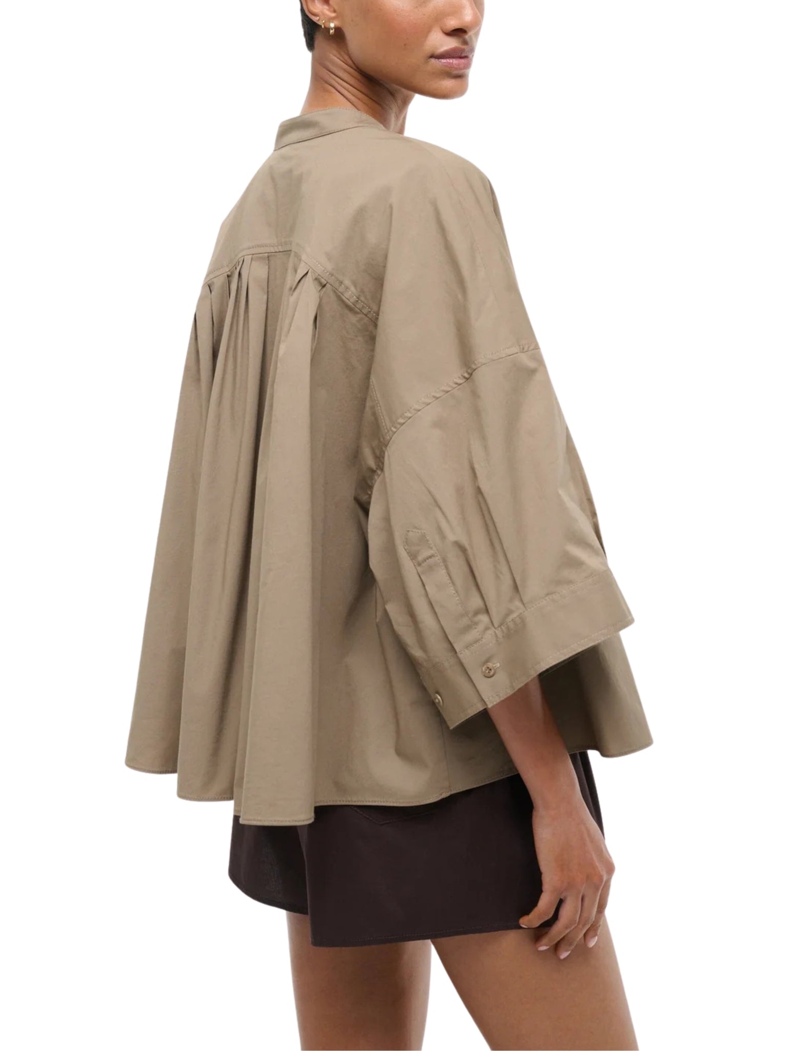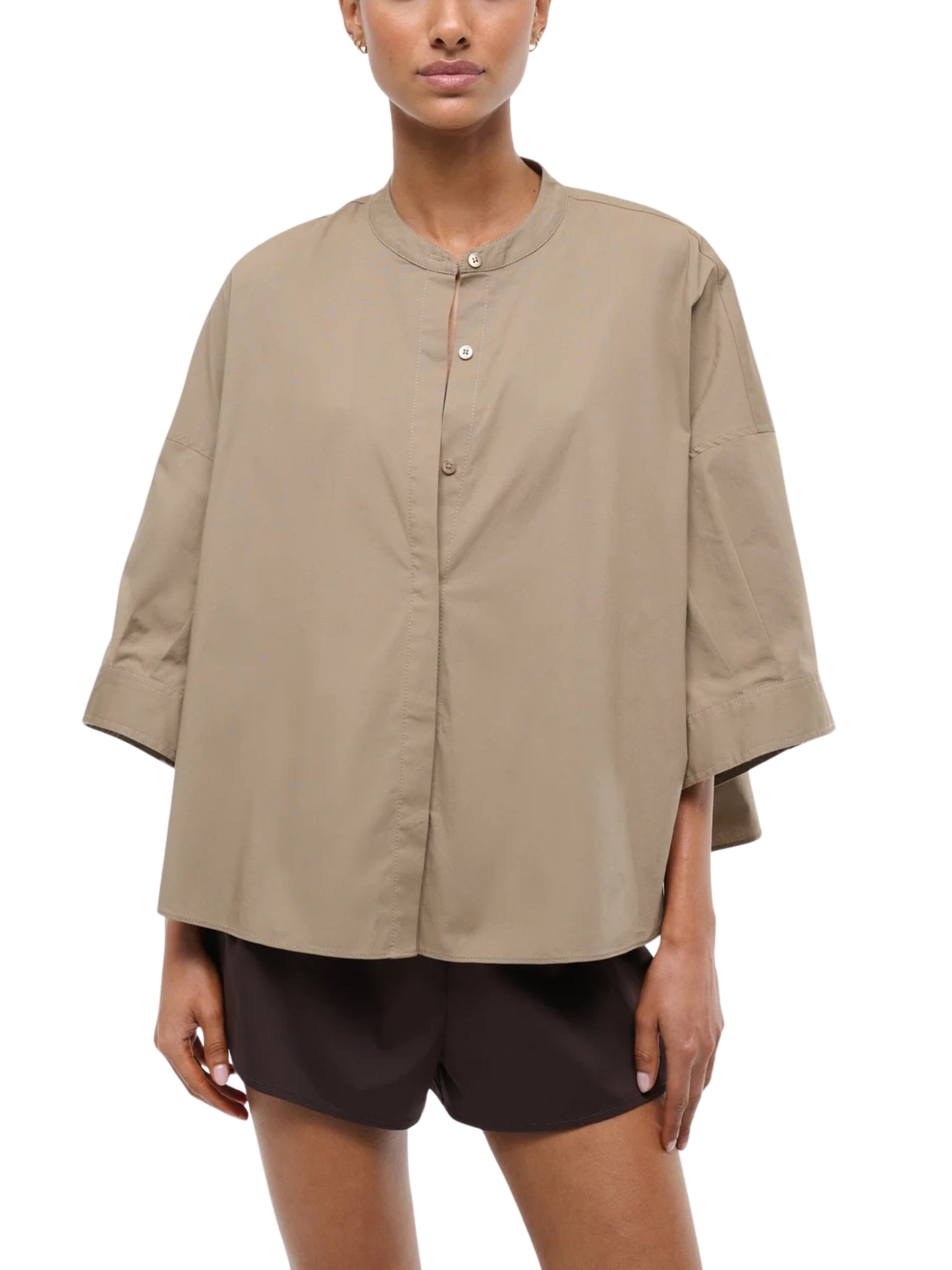 A versatile top crafted from slightly stretchy cotton poplin for a comfortable yet structured fit. Perfect for pairing with skirts, trousers, or layering under jackets.